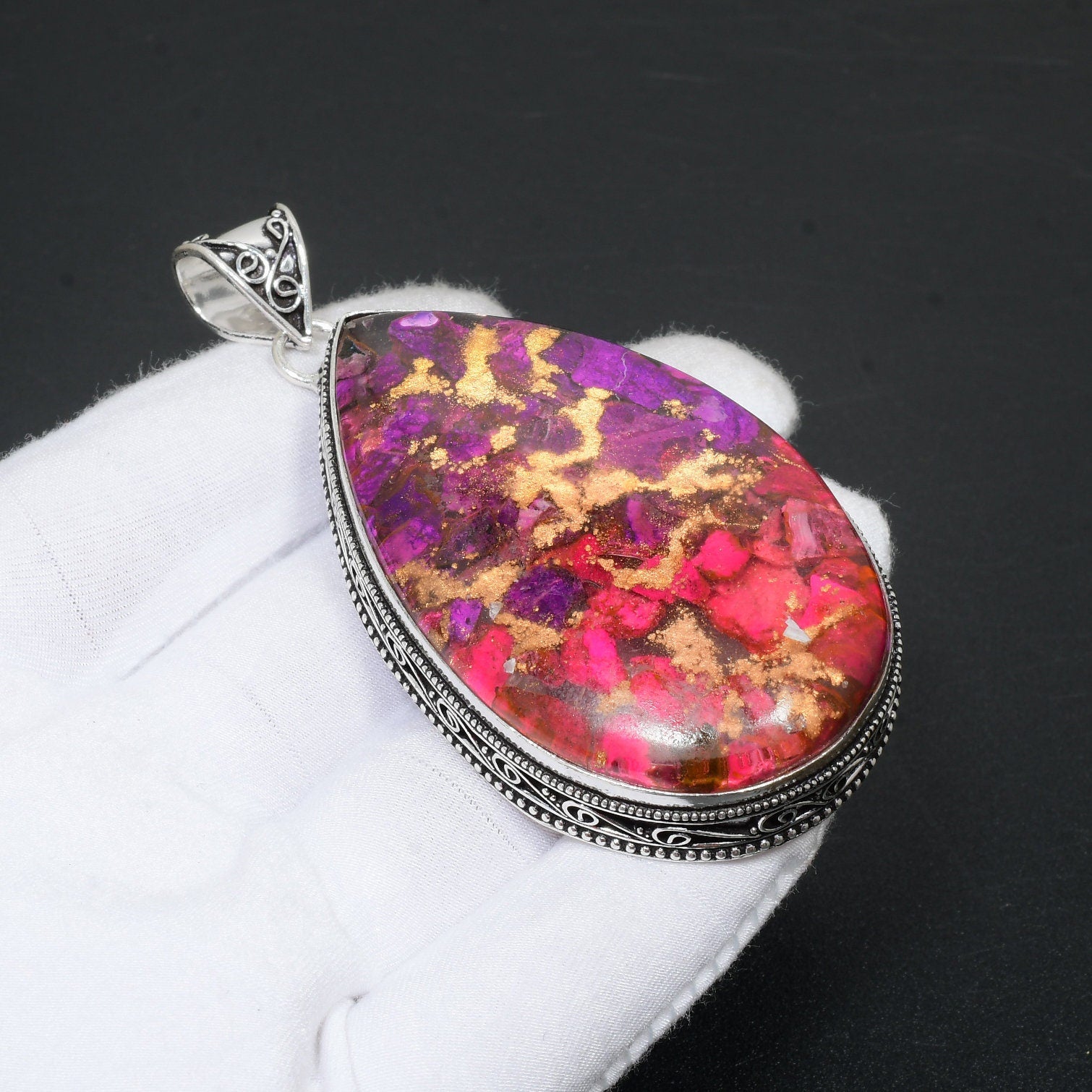 Featuring a vibrant stone with striking pink and purple hues, this piece is designed to mesmerize.