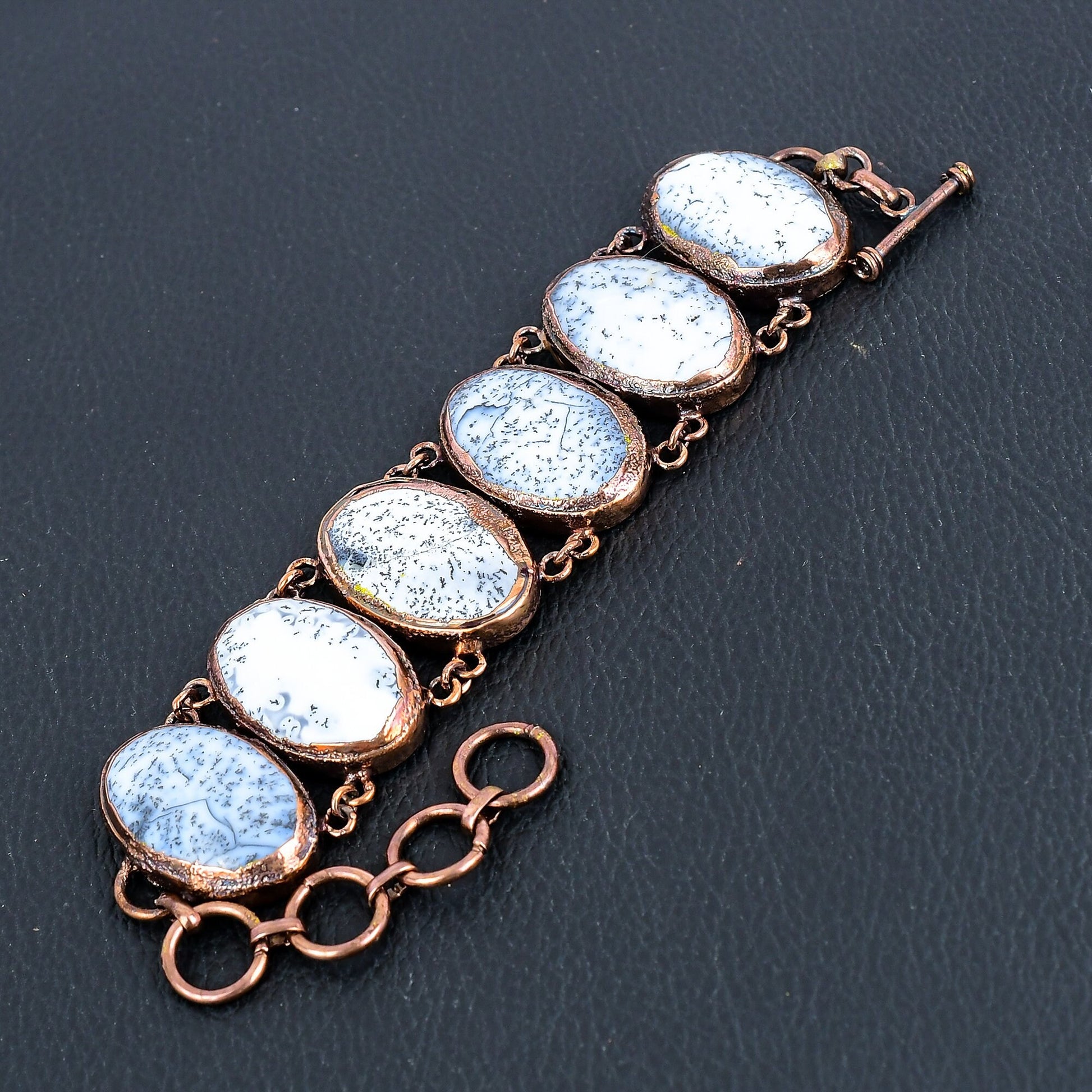 Introducing our elegant Copper and Dendritic Opal Bracelet, a stunning fusion of natural beauty and artisanal craftsmanship. This exquisite piece features: