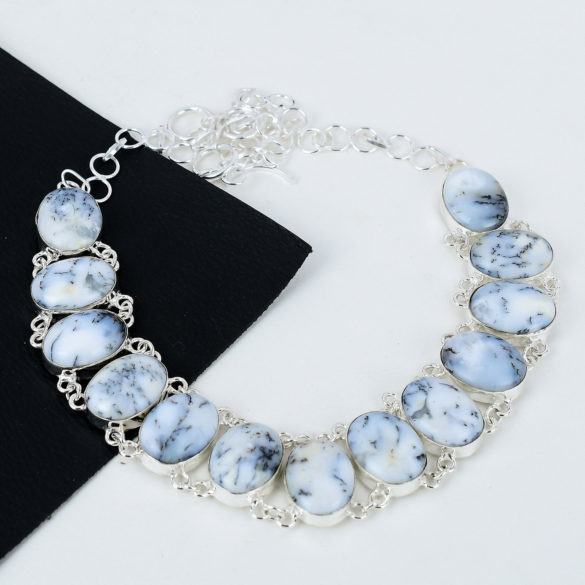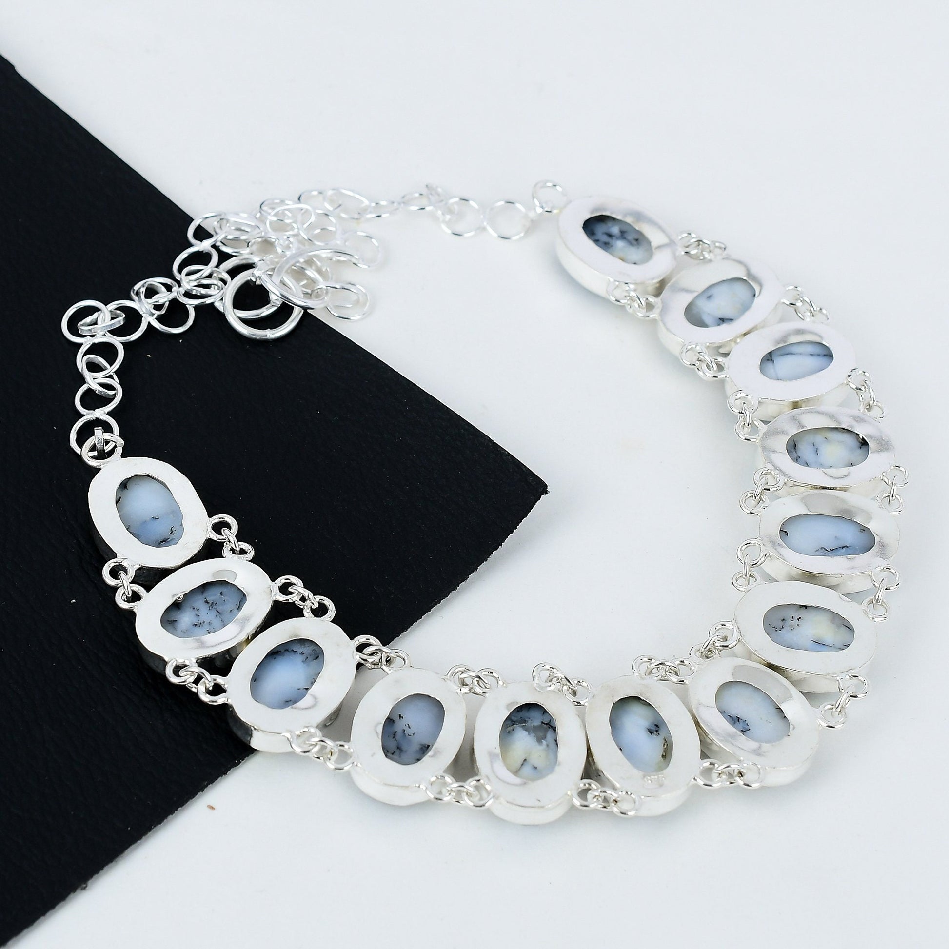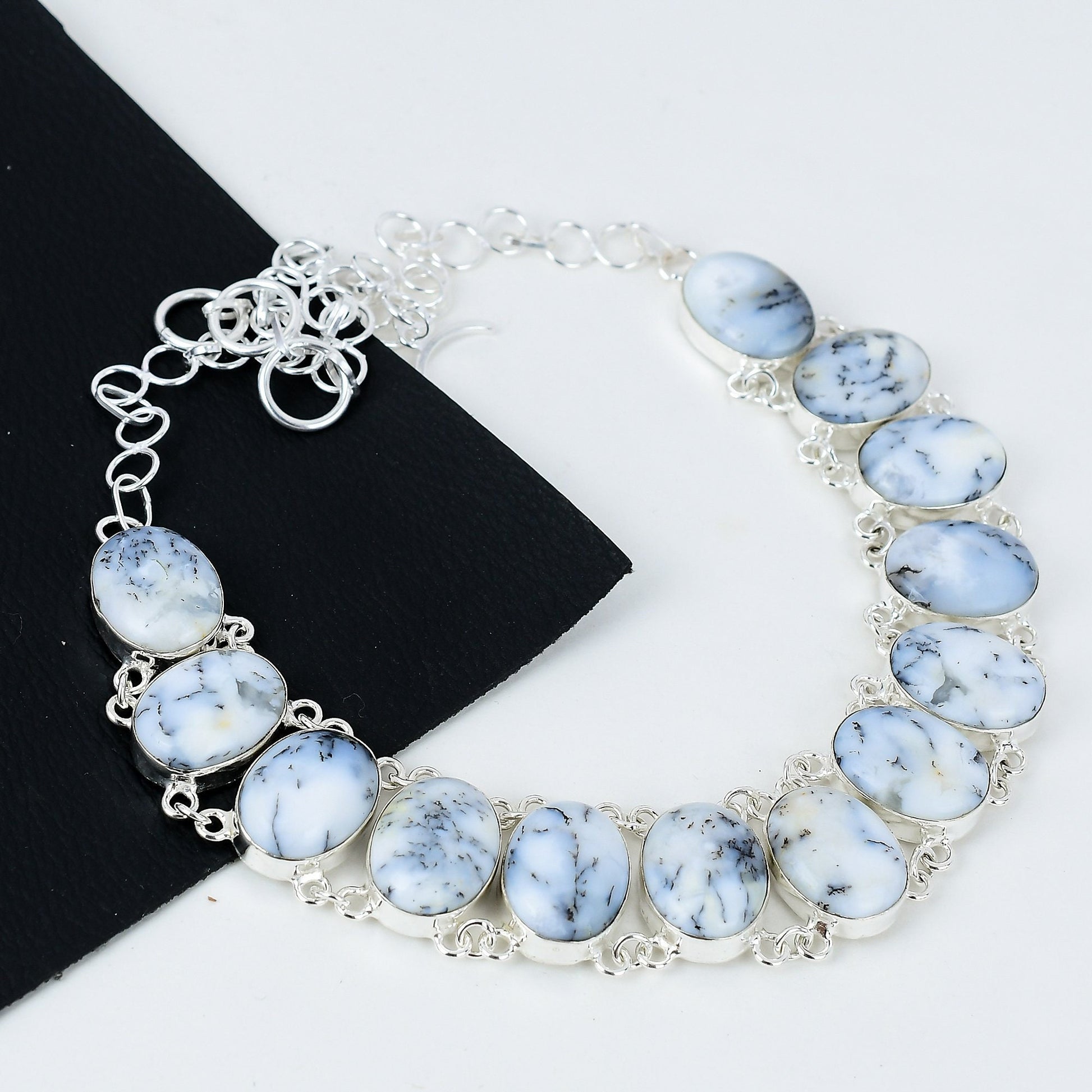 - Material: Premium silver with dendritic opal stones