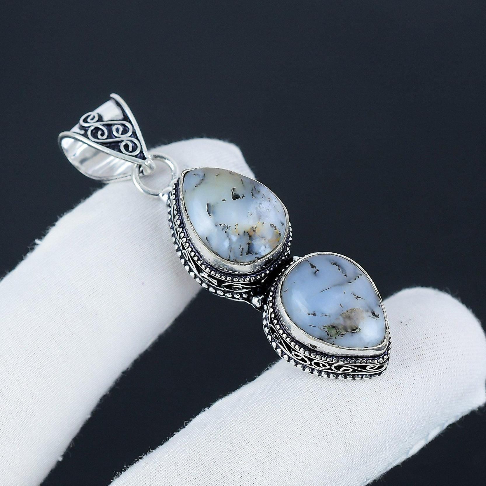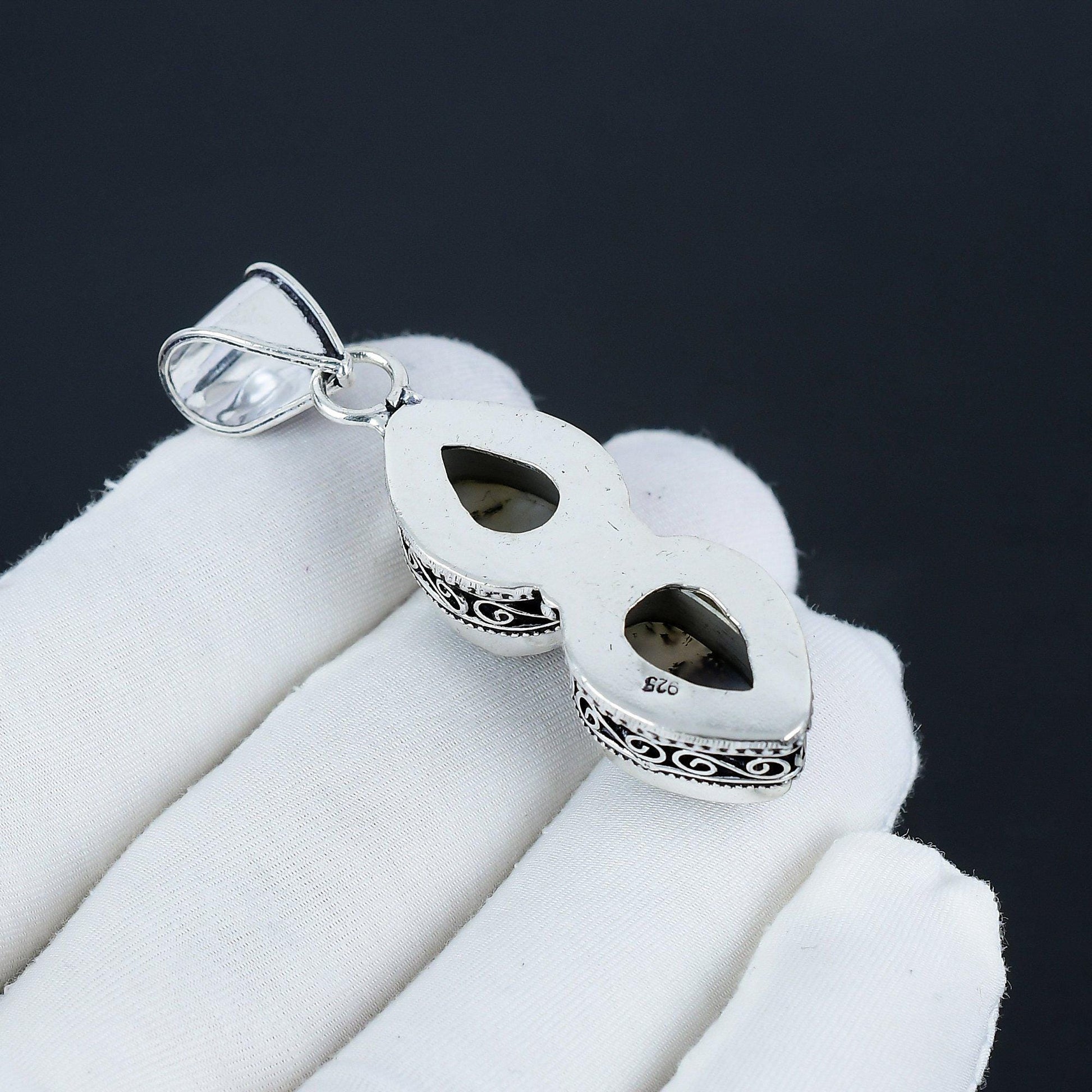 Elevate your elegance with this exquisite handcrafted pendant, featuring two captivating gemstones set in intricate sterling silver.
