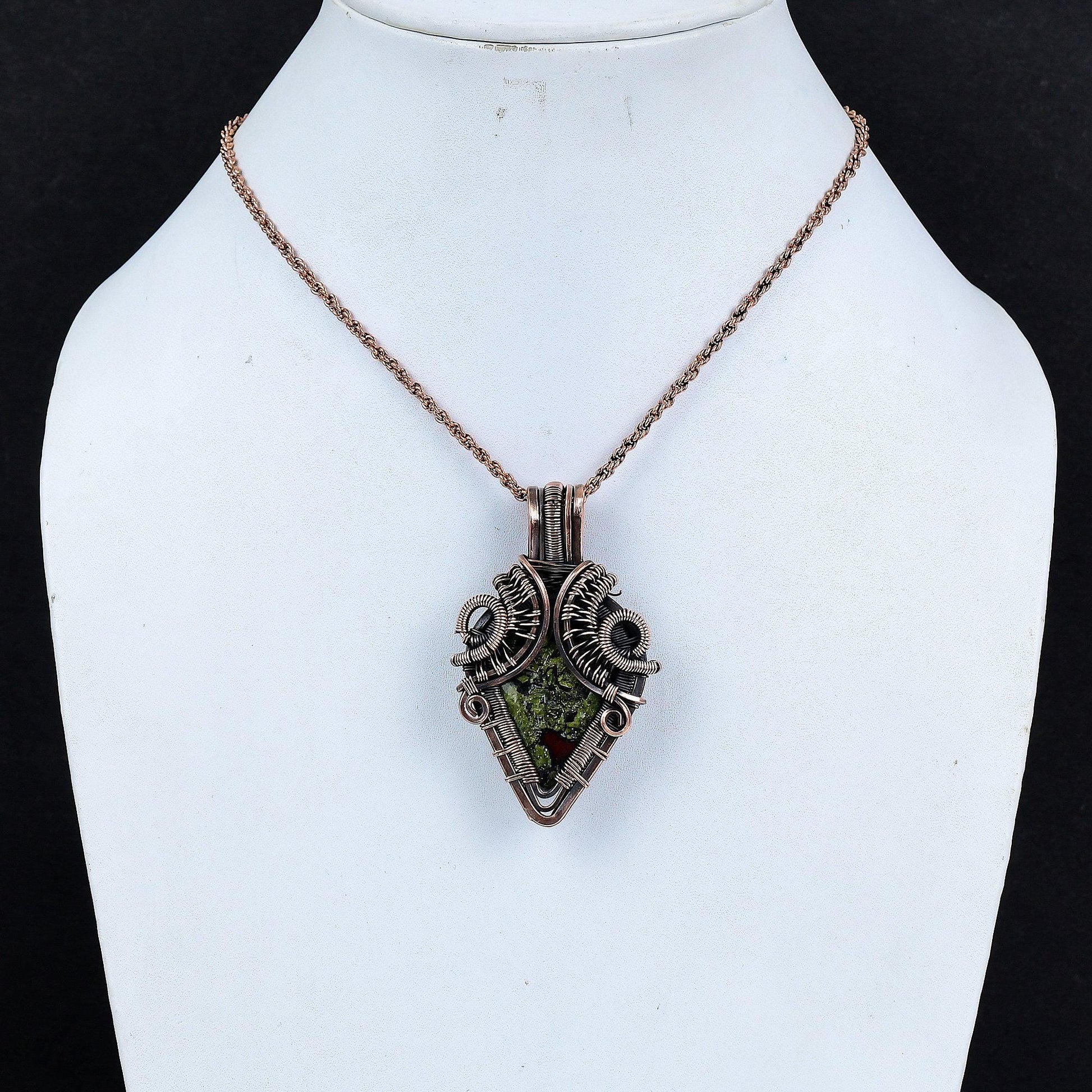 Discover an exquisite fusion of art and nature with this handcrafted wire-wrapped pendant. Featuring a stunning natural gemstone centerpiece, this piece is uniquely designed to capture both elegance and sophistication.