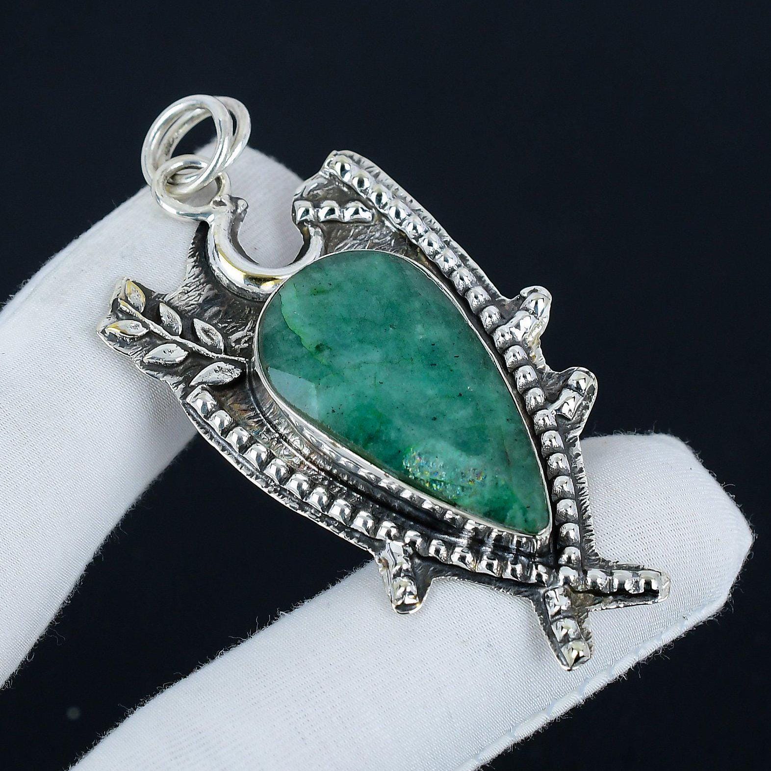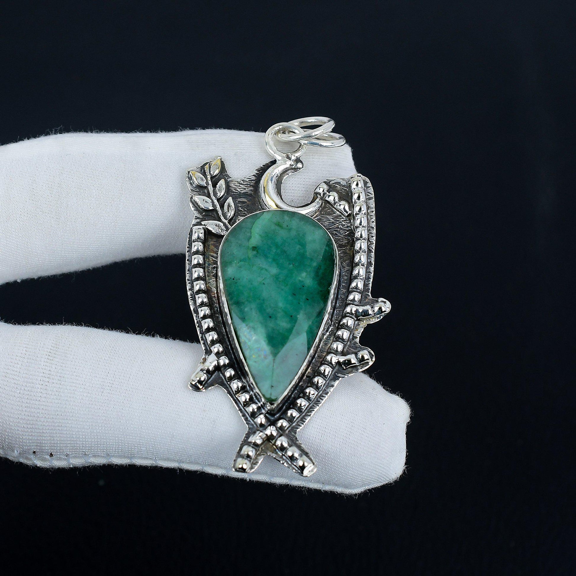 Embrace elegance with our exquisite handcrafted pendant, featuring a stunning emerald-green stone that captivates the eye.