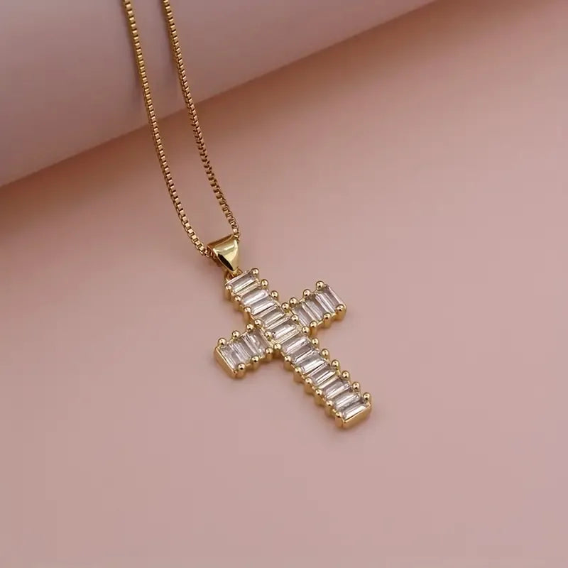 Crafted with precision, this stunning piece features a delicate gold chain and a beautifully detailed cross adorned with shimmering accents.