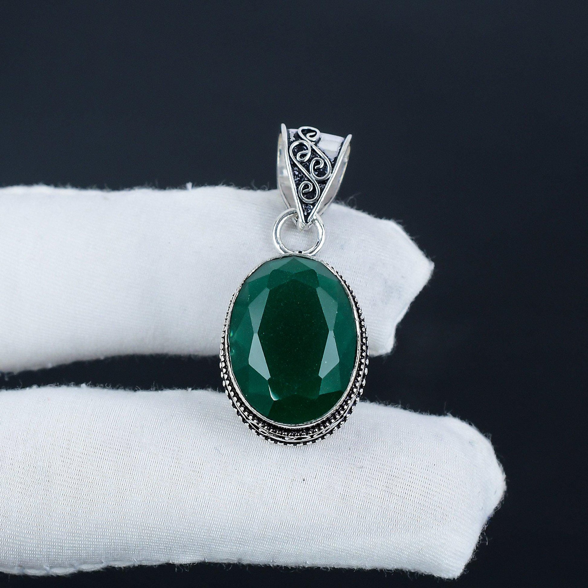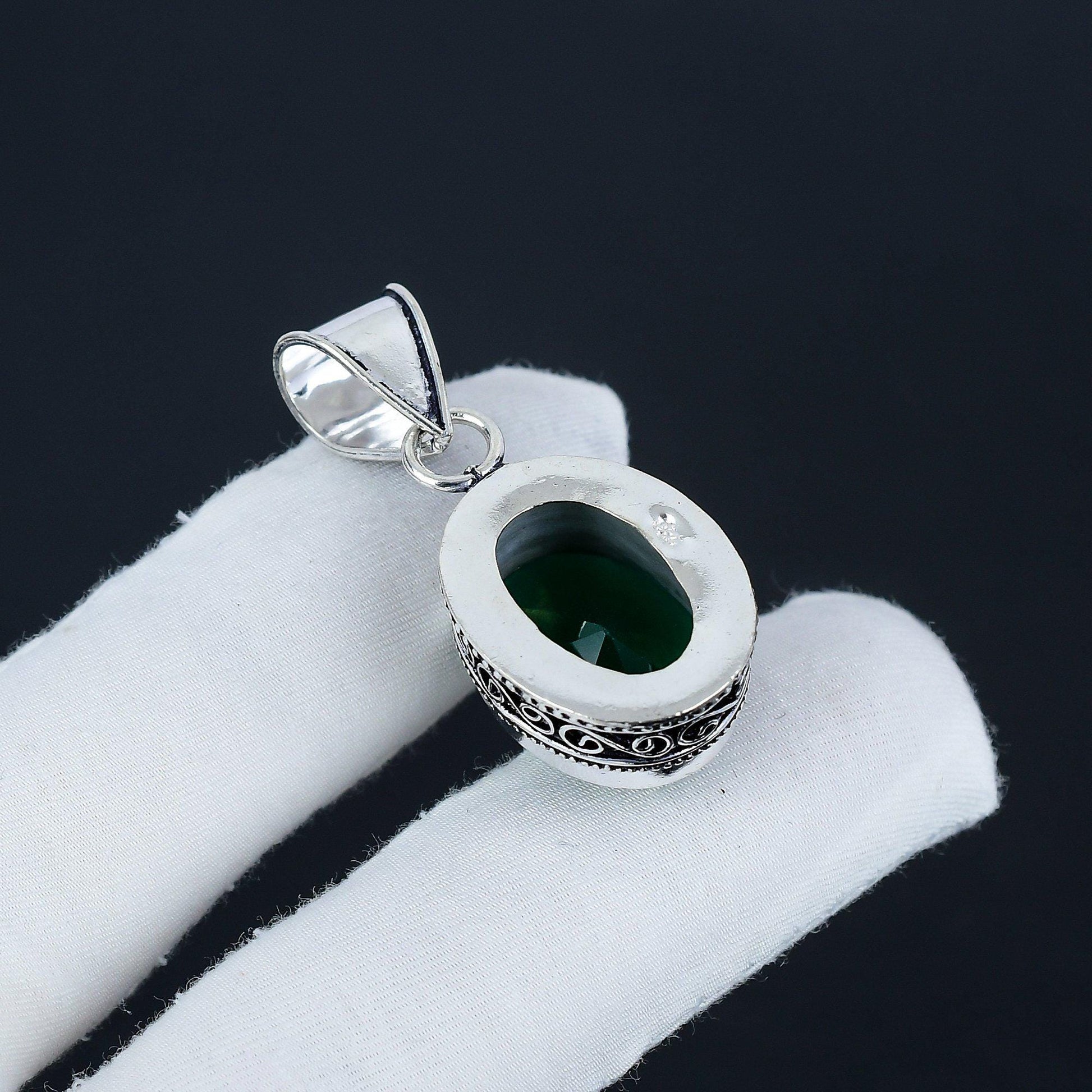 Design: This pendant features a mesmerizing oval-cut, faceted green gemstone, set in an intricately designed silver casing. The vintage-inspired detailing adds a touch of timeless charm.