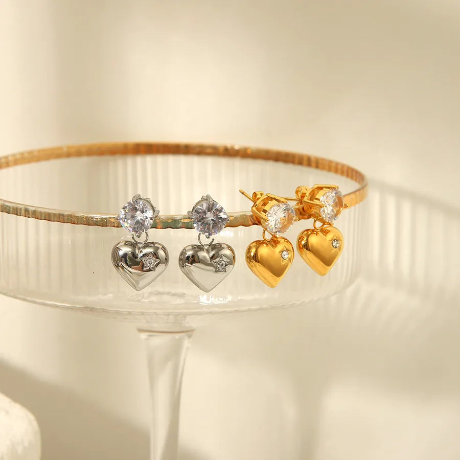 These earrings feature a delicate heart charm that dangles gracefully, adding a touch of romance to any outfit.