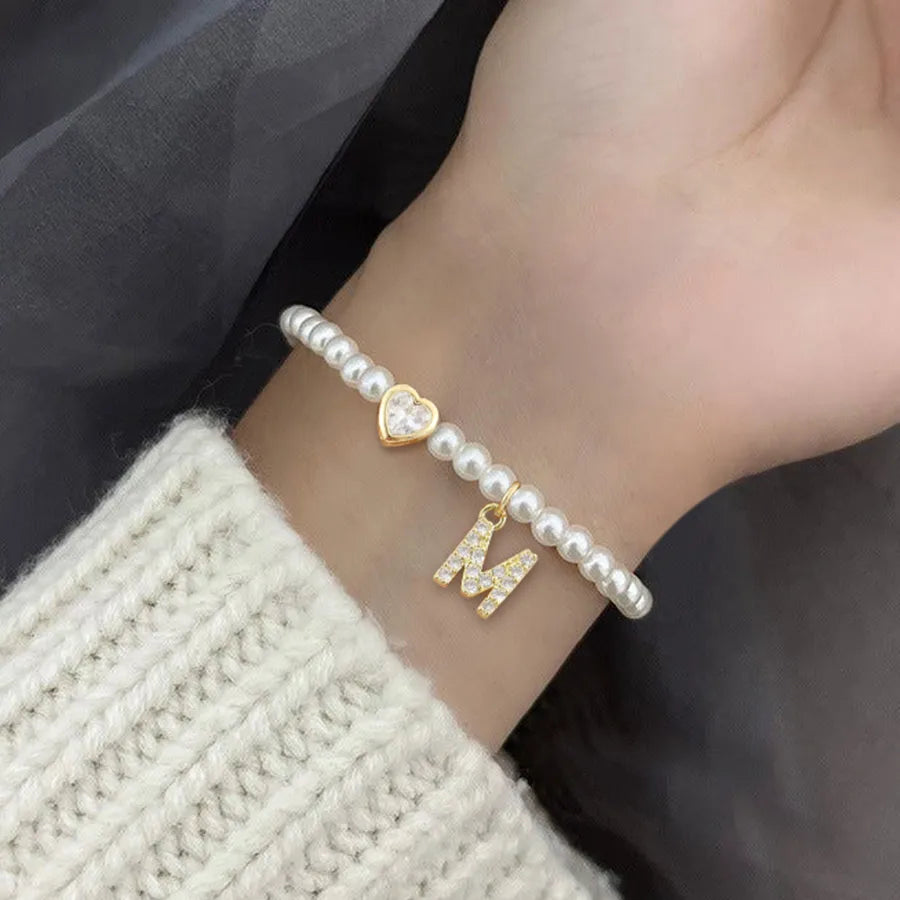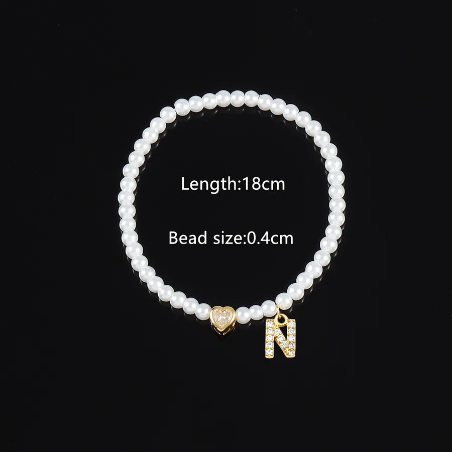Introducing our exquisite Pearl Initial Charm Bracelet, a perfect blend of elegance and personalization.