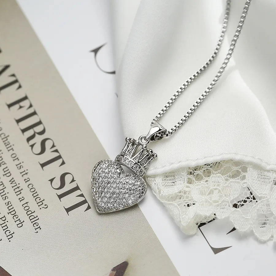 Embrace the allure of royalty and elegance with this exquisite Heart Crown Pendant Necklace Set. Crafted meticulously, each pendant features a heart crowned with brilliance, embodying grace and luxury.