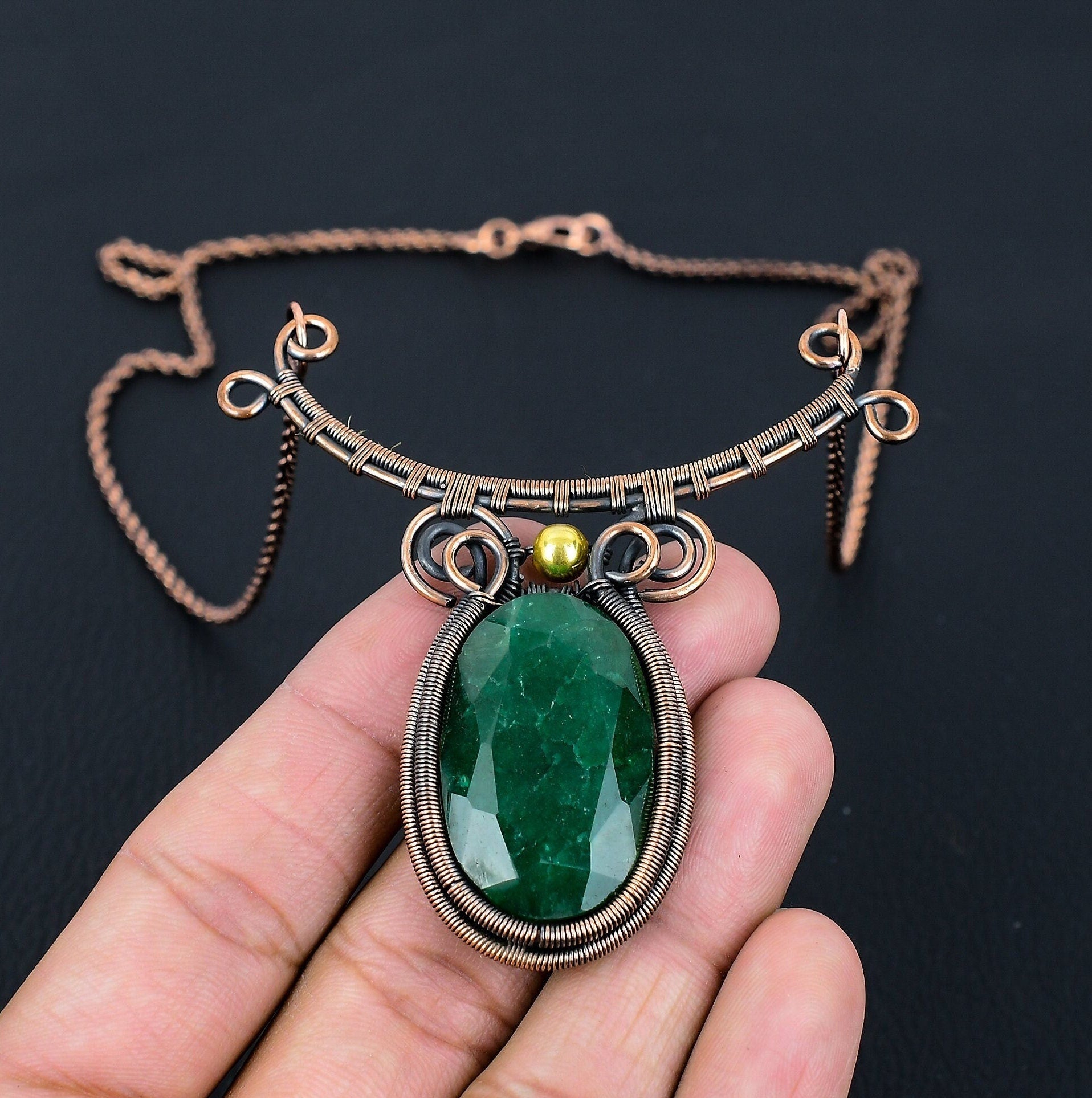 - Material: Green Gemstone, Copper Wire