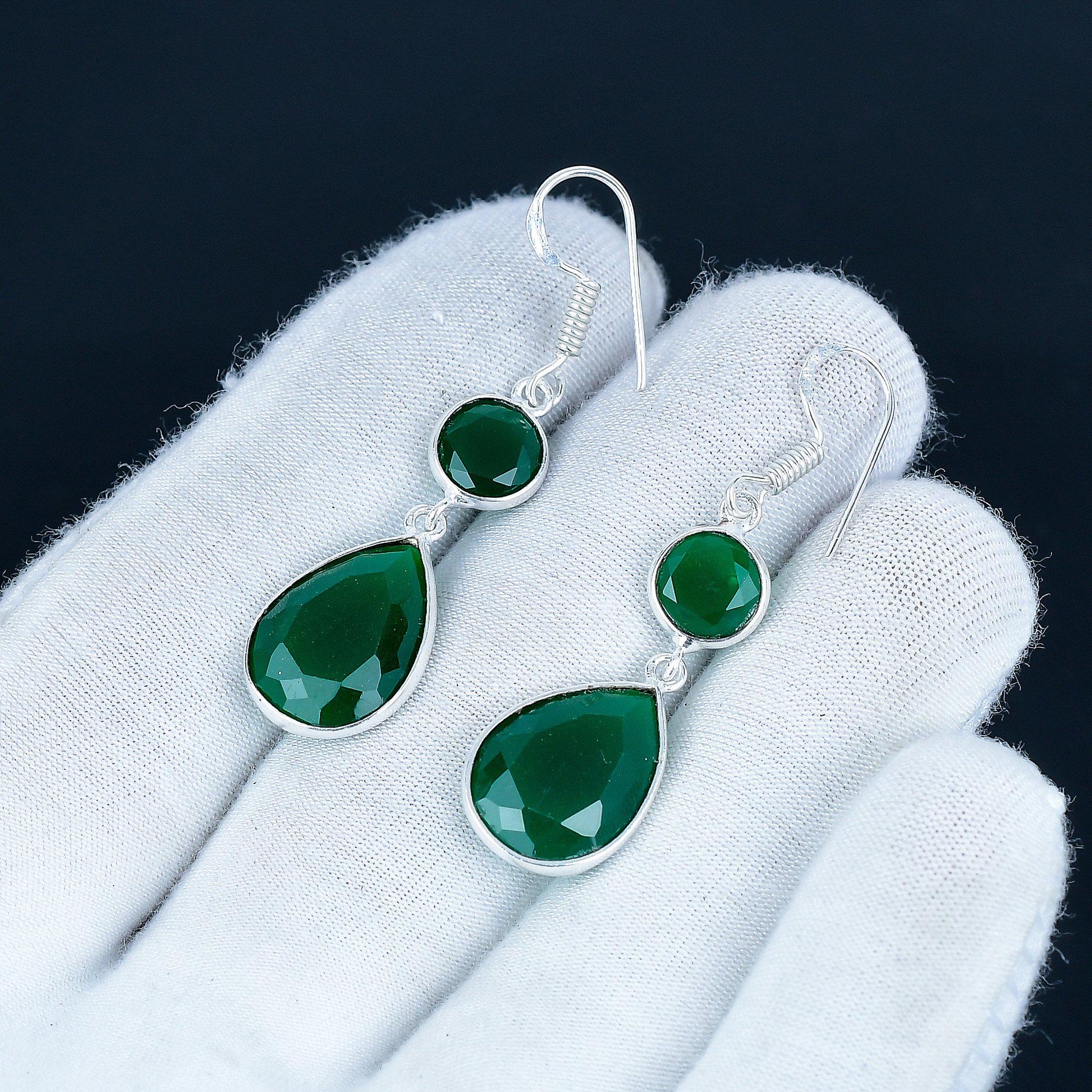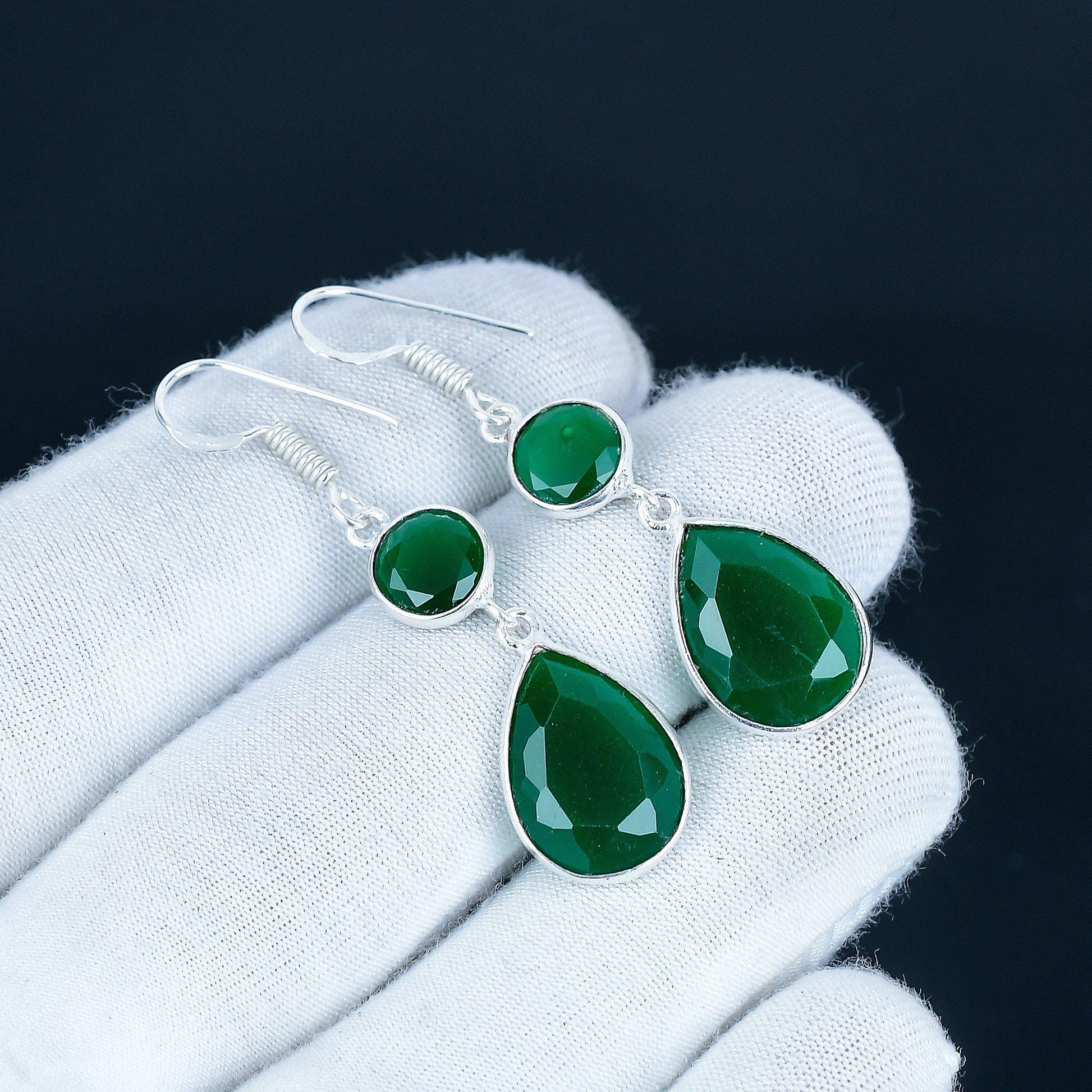 Presenting our exquisite Green Teardrop Sterling Silver Earrings.