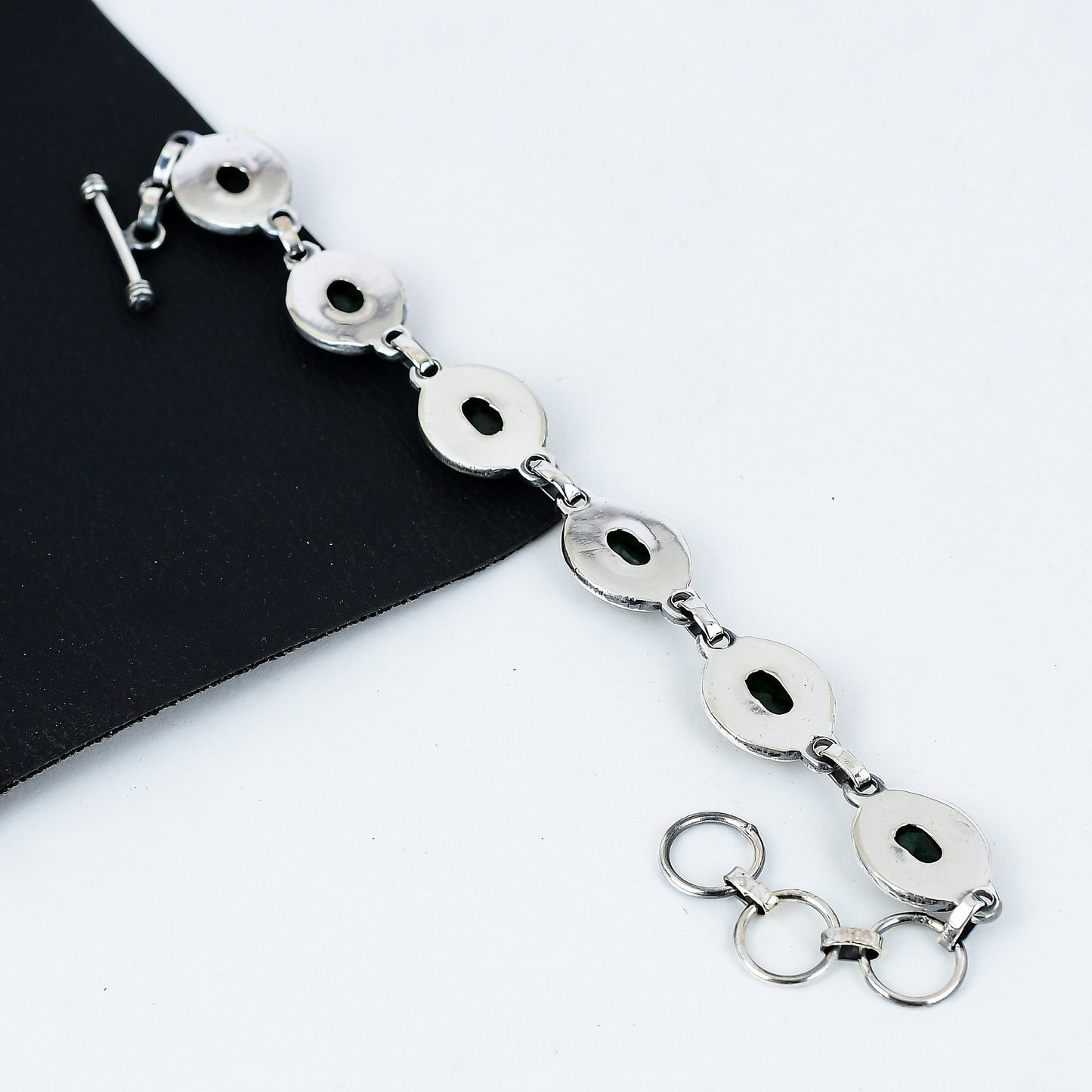 Crafted with high-quality sterling silver, it features beautifully set green stones that catch the light perfectly. The intricate detailing adds a touch of sophistication to every outfit.