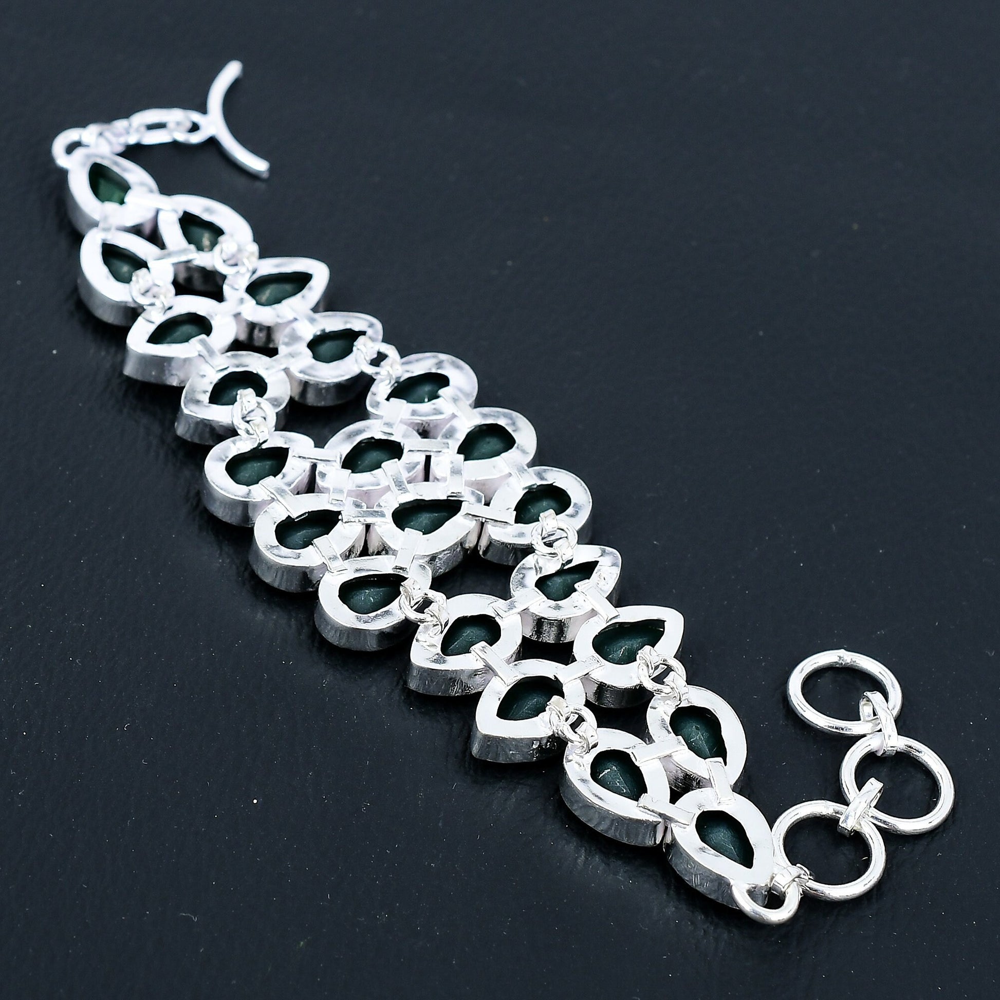Enhance your elegance with this exquisite handcrafted bracelet, featuring stunning teardrop-shaped dark green gemstones.