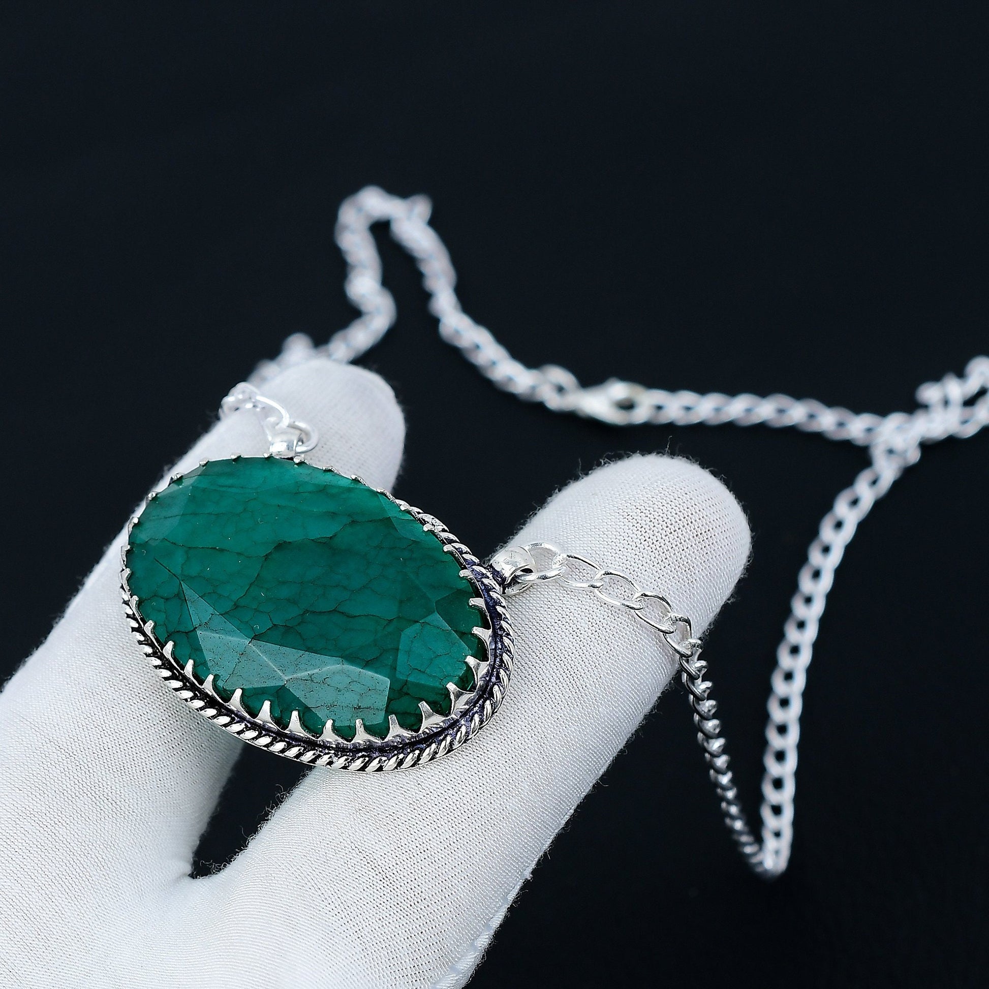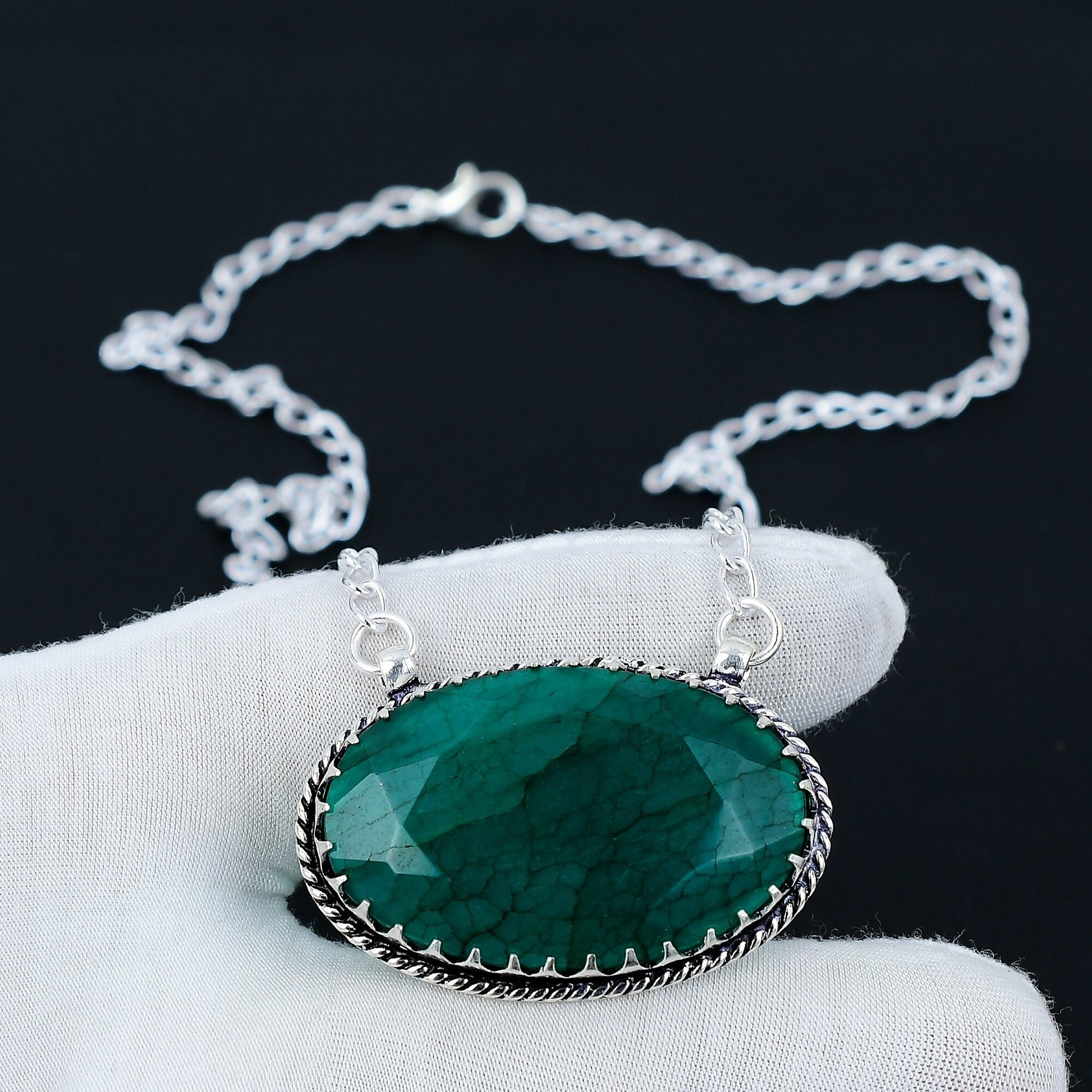 The silver chain complements the stone's brilliance, creating a harmonious blend of classic and contemporary styles.