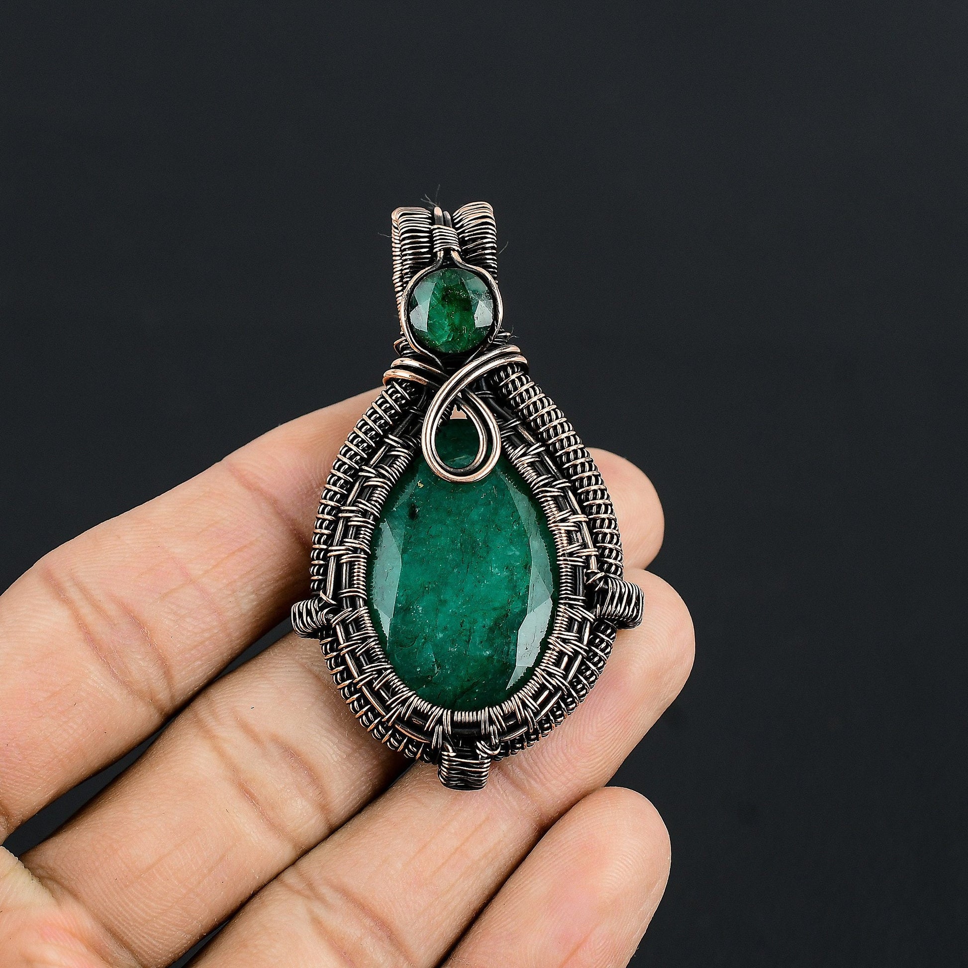 Design: Intricately crafted with premium wire, this pendant showcases an exquisite emerald-green stone, expertly wrapped to create a captivating pattern.