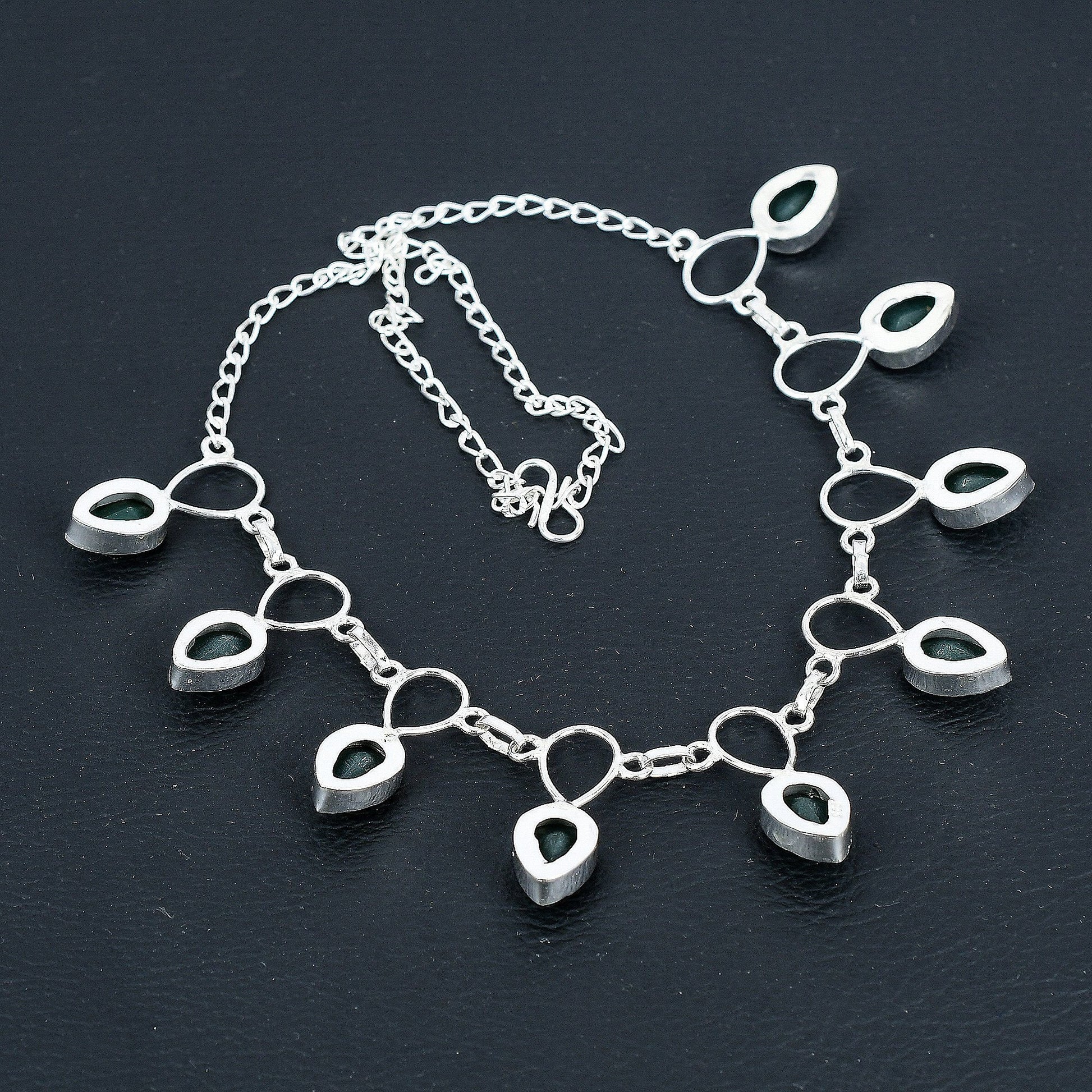 This stunning necklace features beautifully crafted green stones set in a luxurious silver-tone design, offering a blend of sophistication and modern elegance.