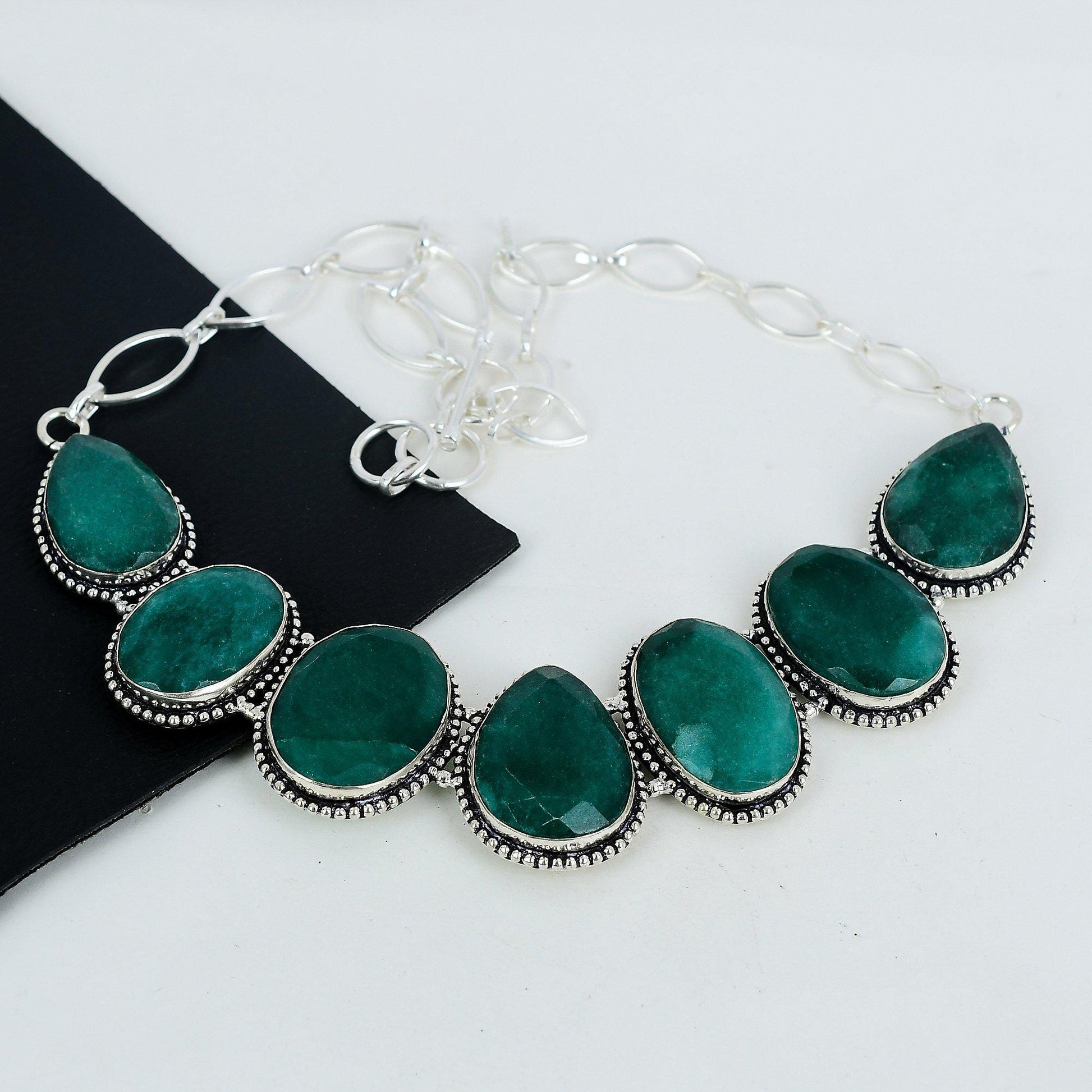 Experience the elegance of our handcrafted gemstone necklace, featuring stunning teardrop-shaped green stones that exude a sense of timeless beauty.