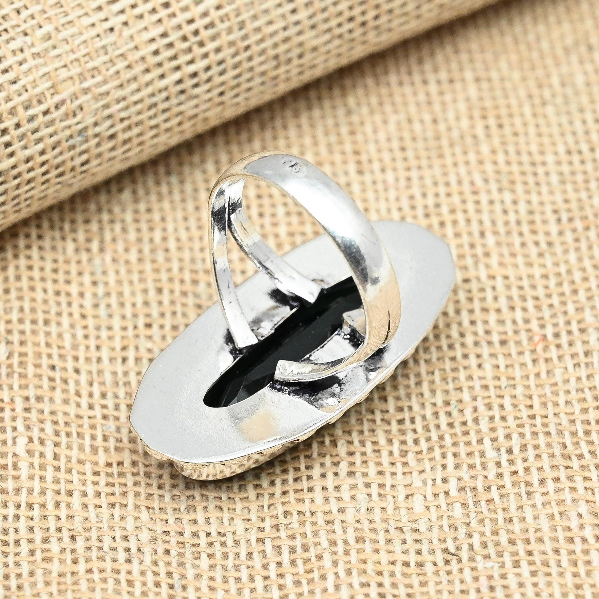 The deep, mesmerizing hue of the stone beautifully complements the intricate silver detailing surrounding it, adding a touch of sophistication to any outfit.