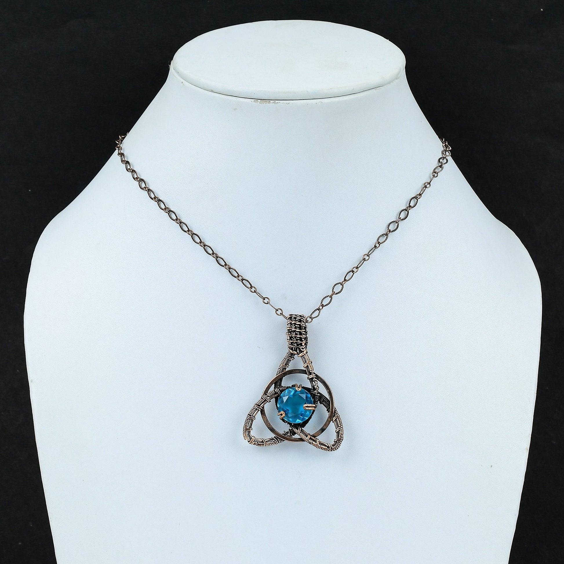 Discover the elegance of our handcrafted wire-wrapped pendant, featuring an exquisite blue gemstone at its core.