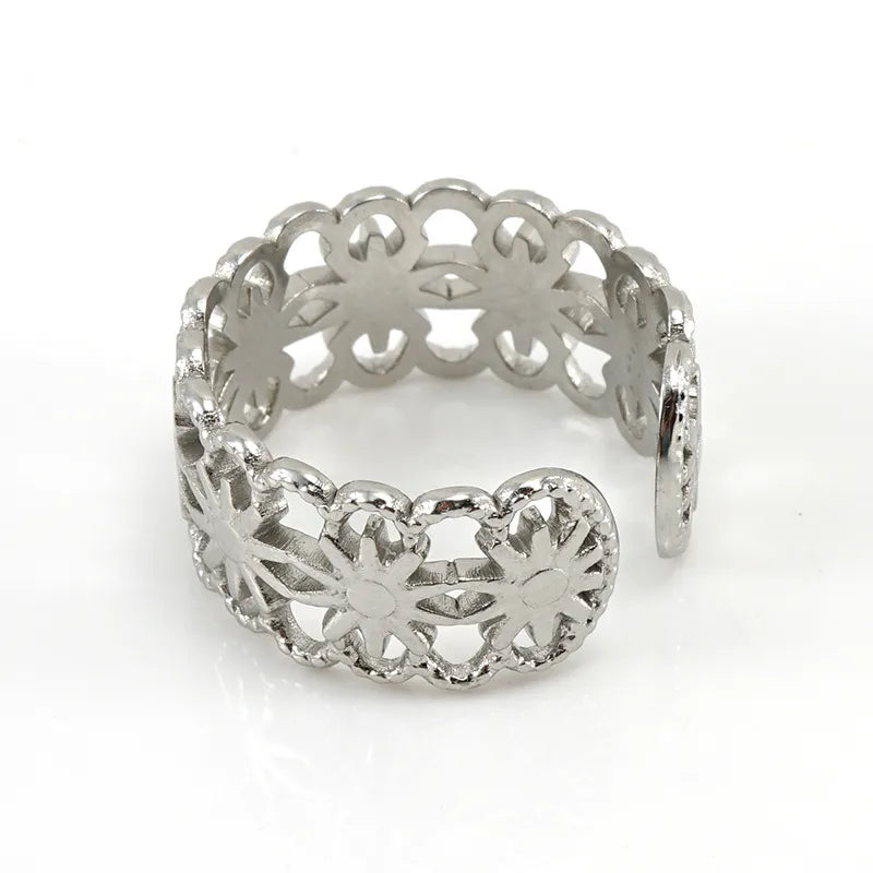 Design: Intricately detailed with a captivating floral pattern, these rings exude sophistication and charm, perfect for any fashion-forward individual.