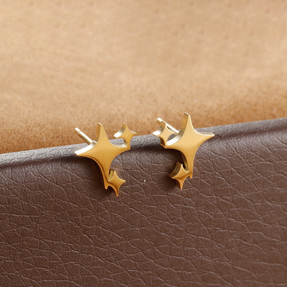 Experience the beauty of the cosmos with the Sparkling Sky Studs. Crafted from high-quality stainless steel, these exquisite earrings feature a striking star design that adds an enchanting touch to any attire.