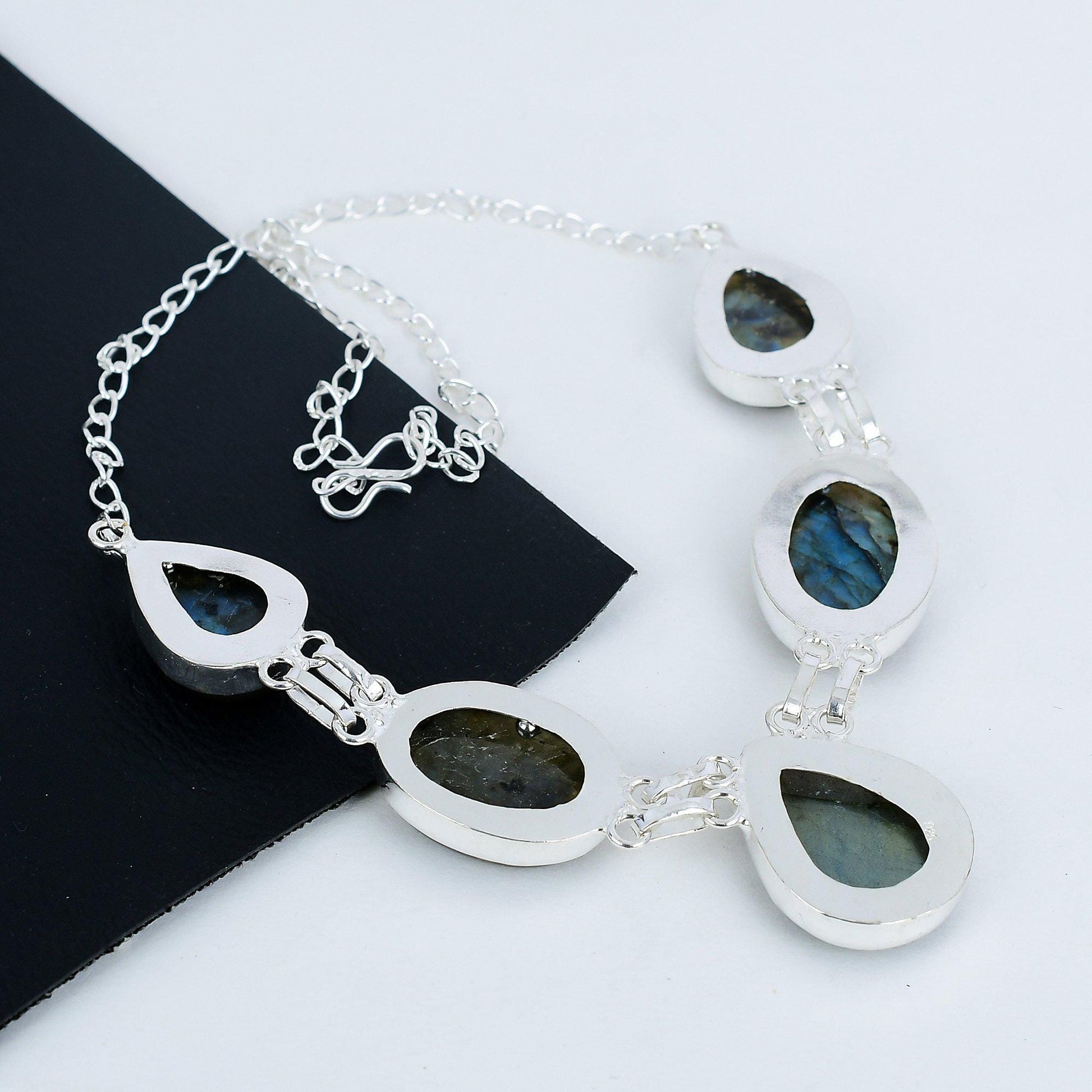 Experience timeless elegance with our stunning Labradorite Necklace, exquisitely designed to highlight the captivating beauty of labradorite gemstones. Each gemstone is expertly cut and polished to showcase its unique play of colors, ensuring that no two pieces are alike.