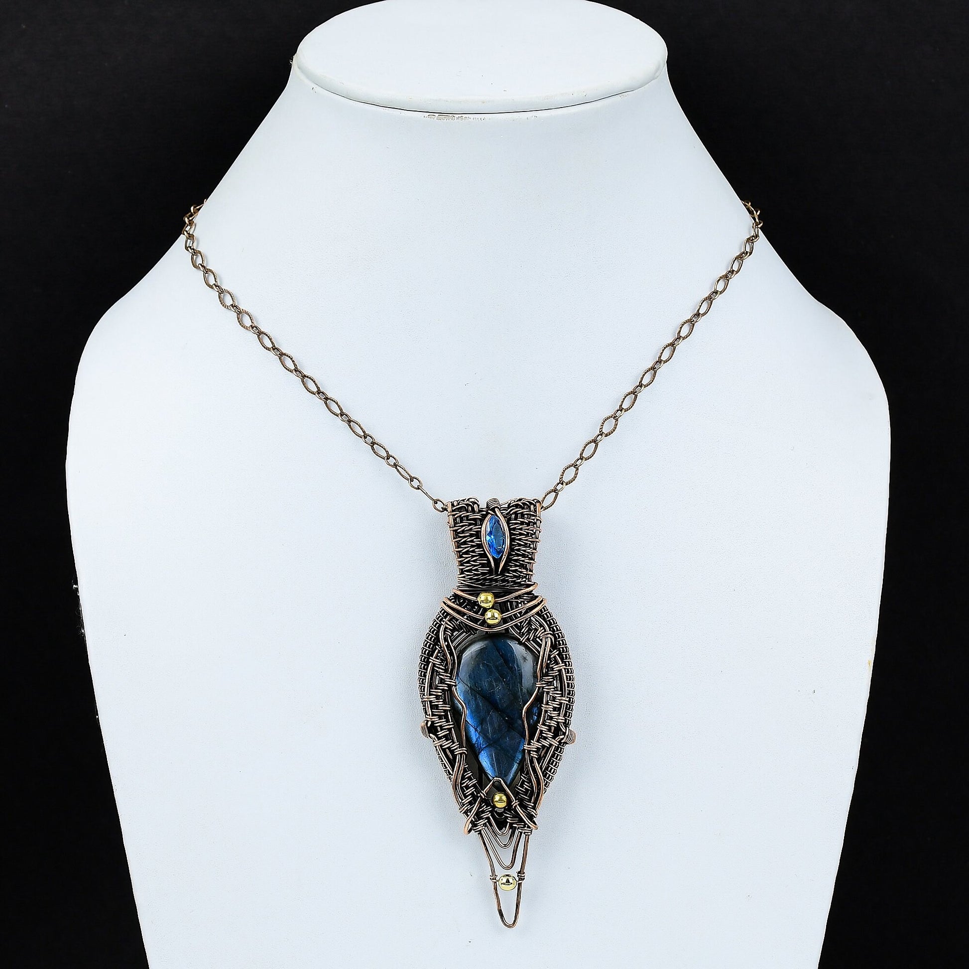 Experience the enchanting allure of our Handcrafted Labradorite Wire Wrapped Pendant, an exquisite piece that radiates elegance and sophistication.