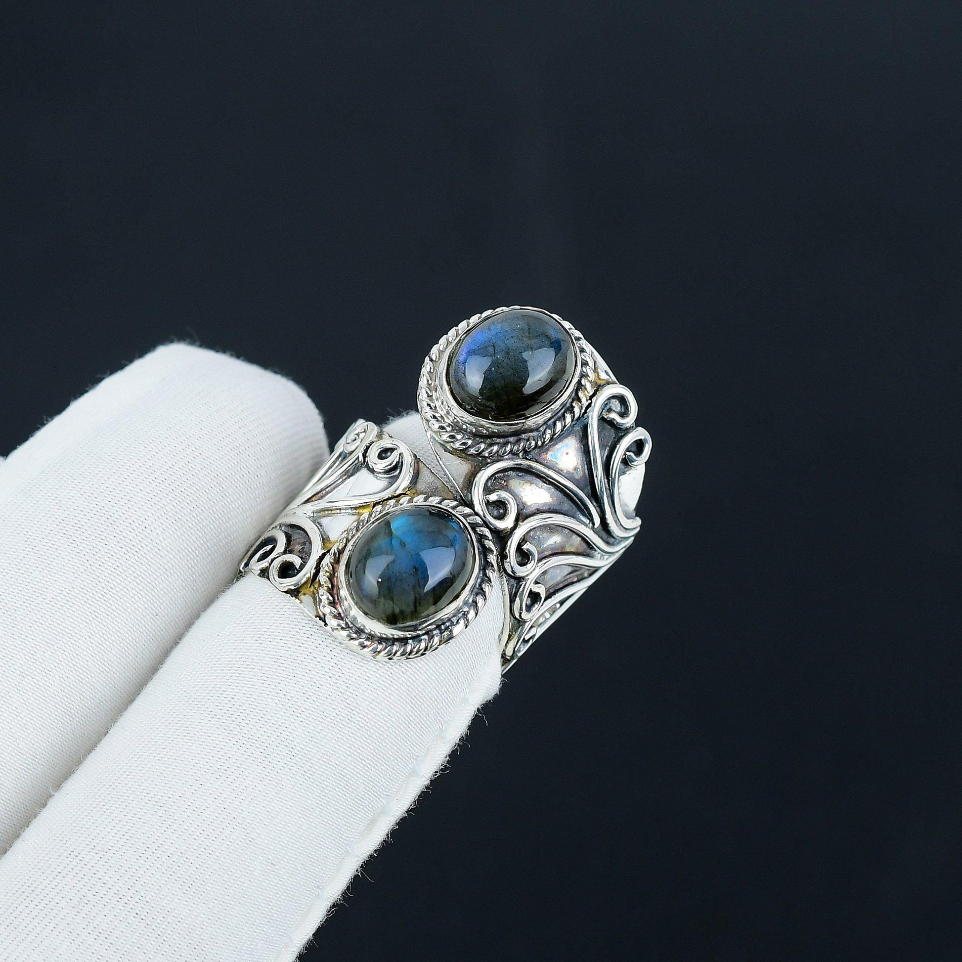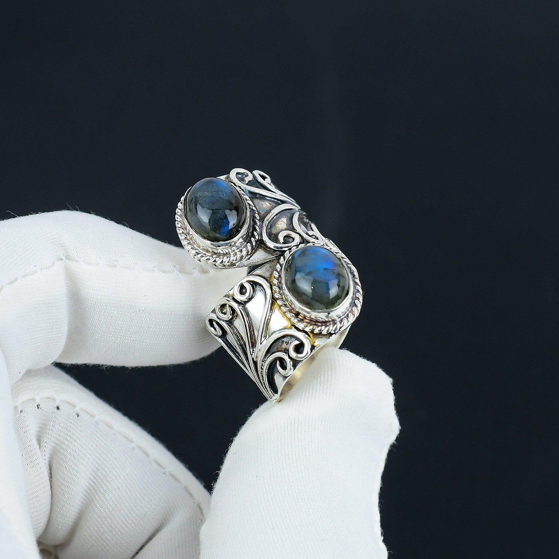 Elevate your style with this exquisite handmade ring, crafted with sterling silver and adorned with captivating labradorite gemstones.
