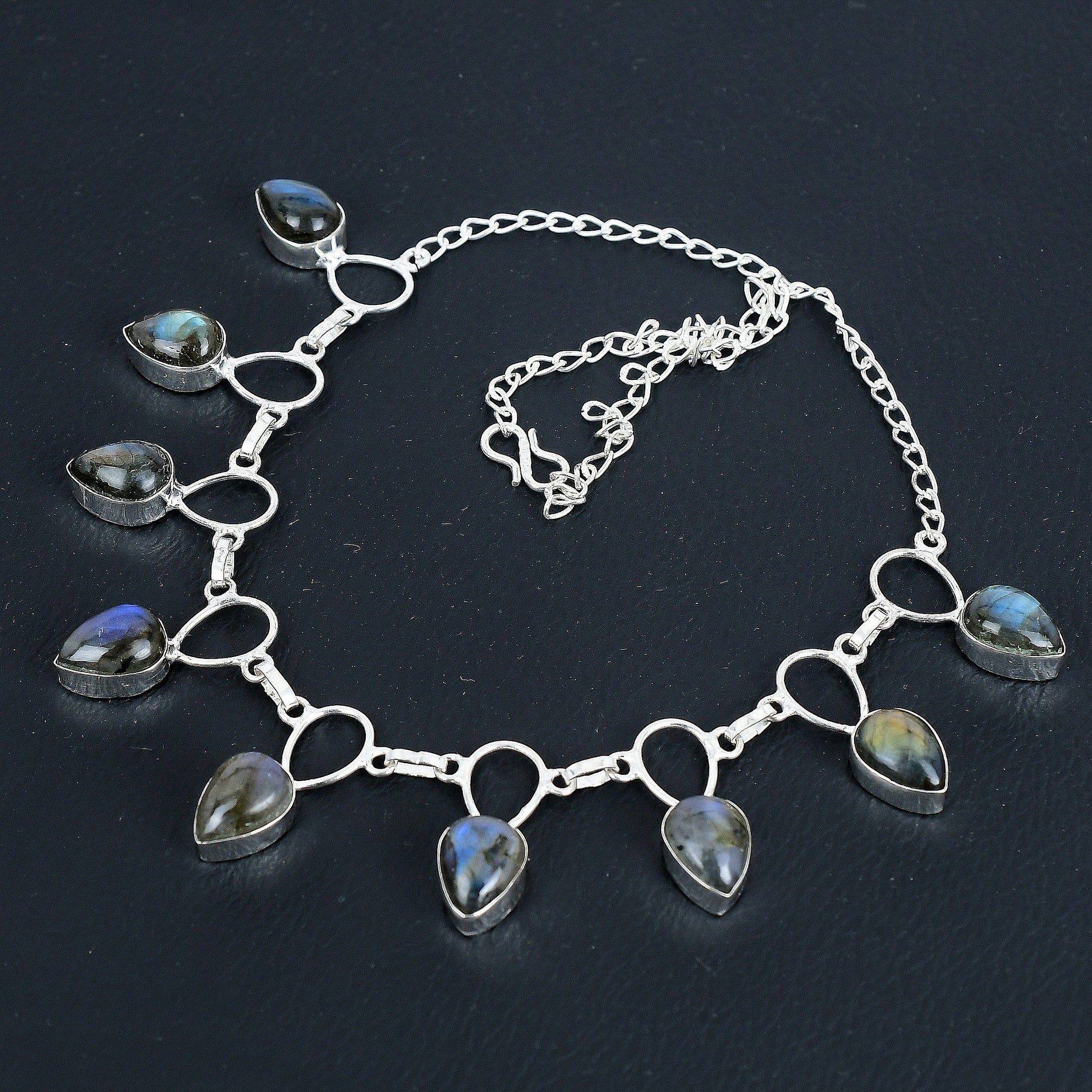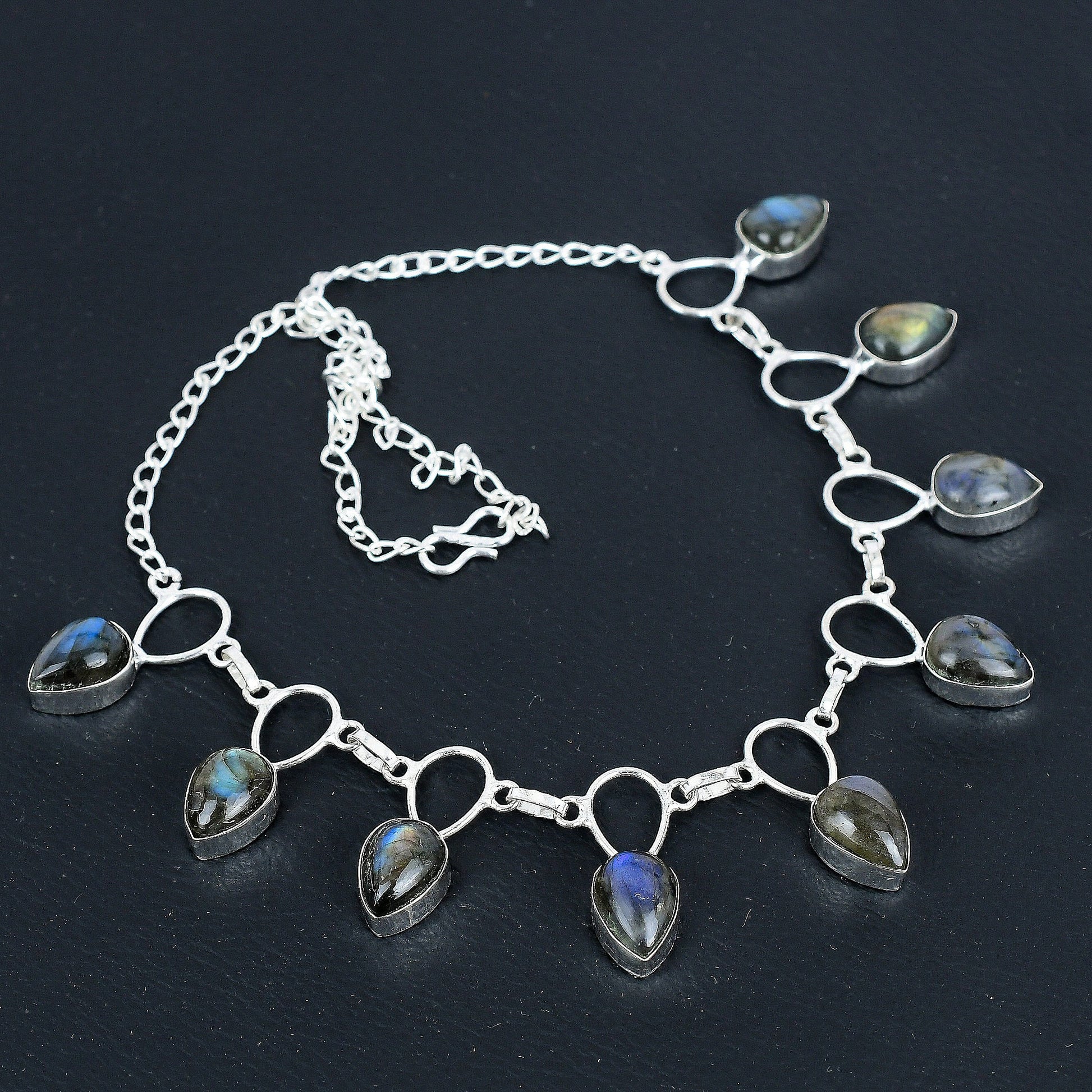 Discover elegance with our exquisite Labradorite Drop Necklace, designed to captivate and inspire. Each pendant is meticulously crafted, showcasing the natural beauty of labradorite gemstones set in sterling silver.