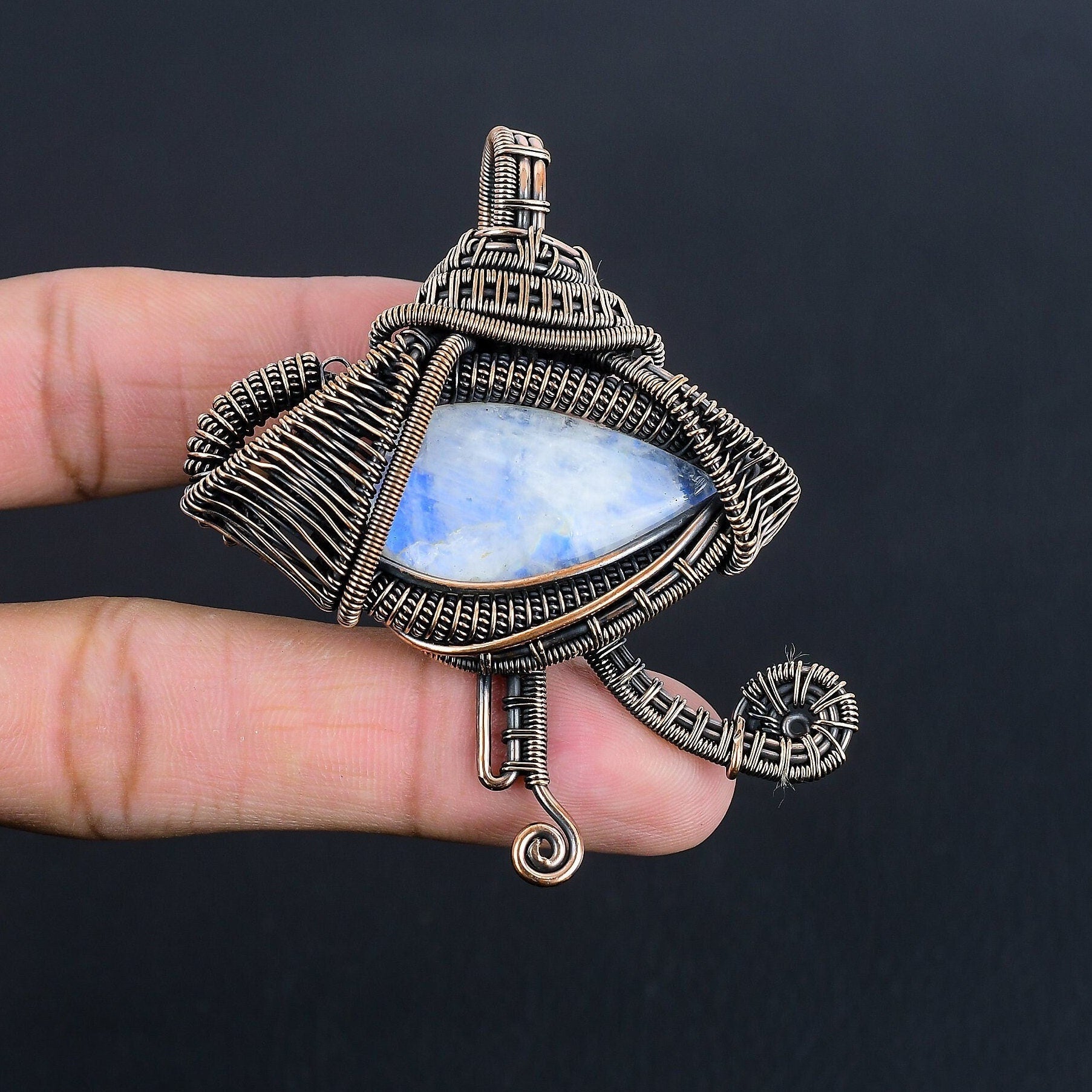 This exquisite piece centers around a striking moonstone, known for its ethereal glow and calming energy, making it a perfect accessory for any occasion.