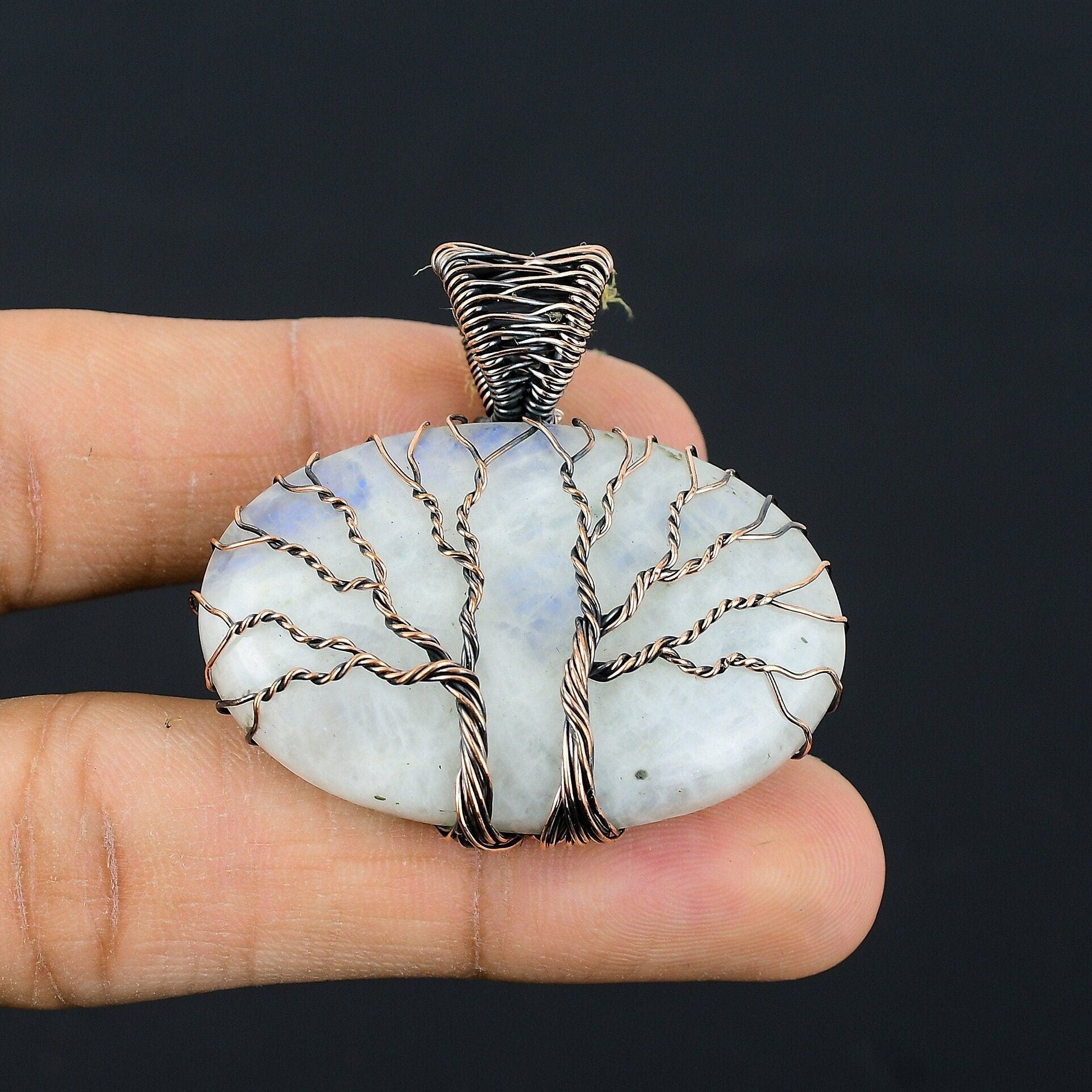 Embrace the magic of nature with our exquisite Tree of Life pendant. This unique piece features a beautifully crafted tree design, intricately woven with copper wire, set against a luminous gemstone backdrop.