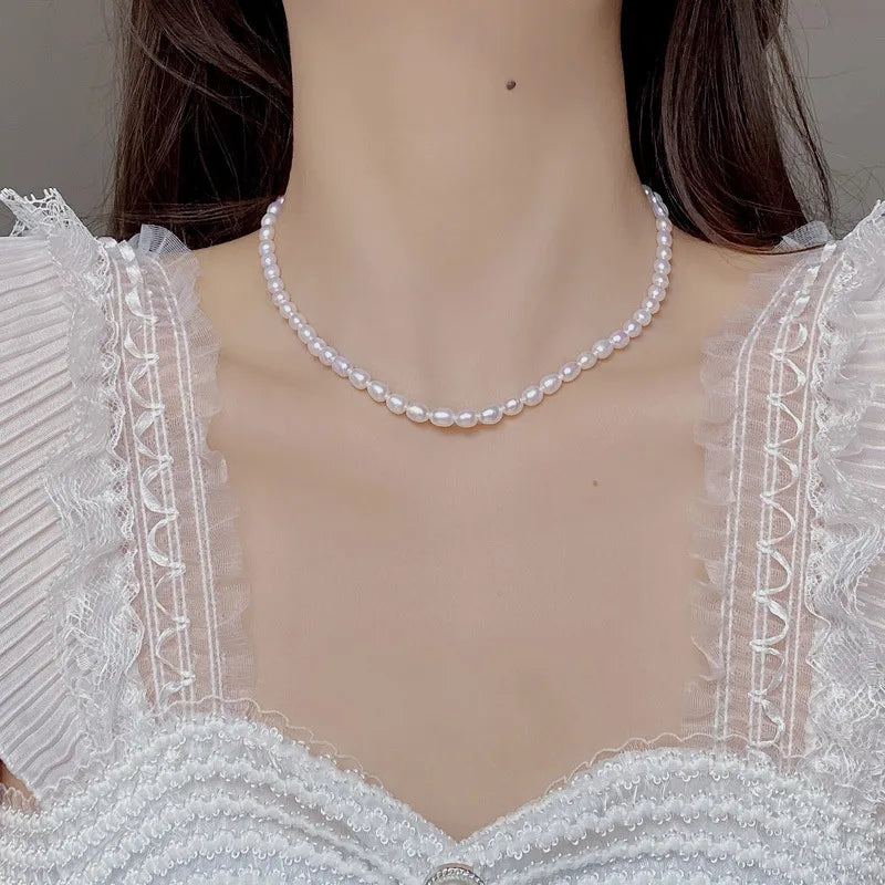 Featuring lustrous, carefully selected pearls, this necklace is designed to complement any outfit, from bridal gowns to evening wear.