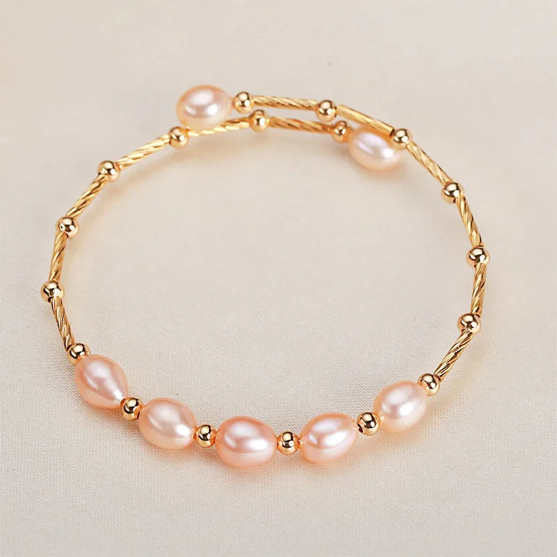 Each bracelet features lustrous freshwater pearls, perfectly complemented by delicately crafted gold links.