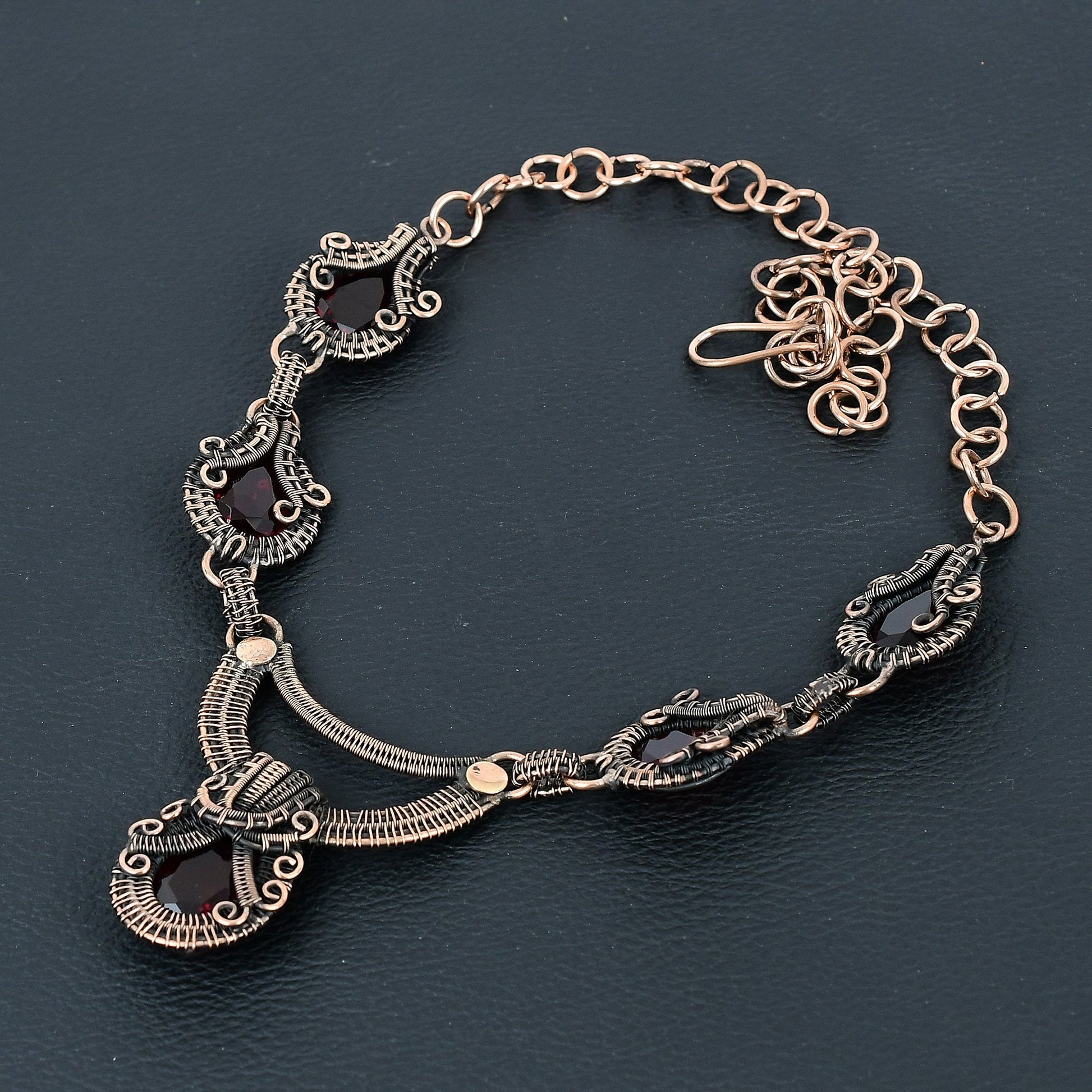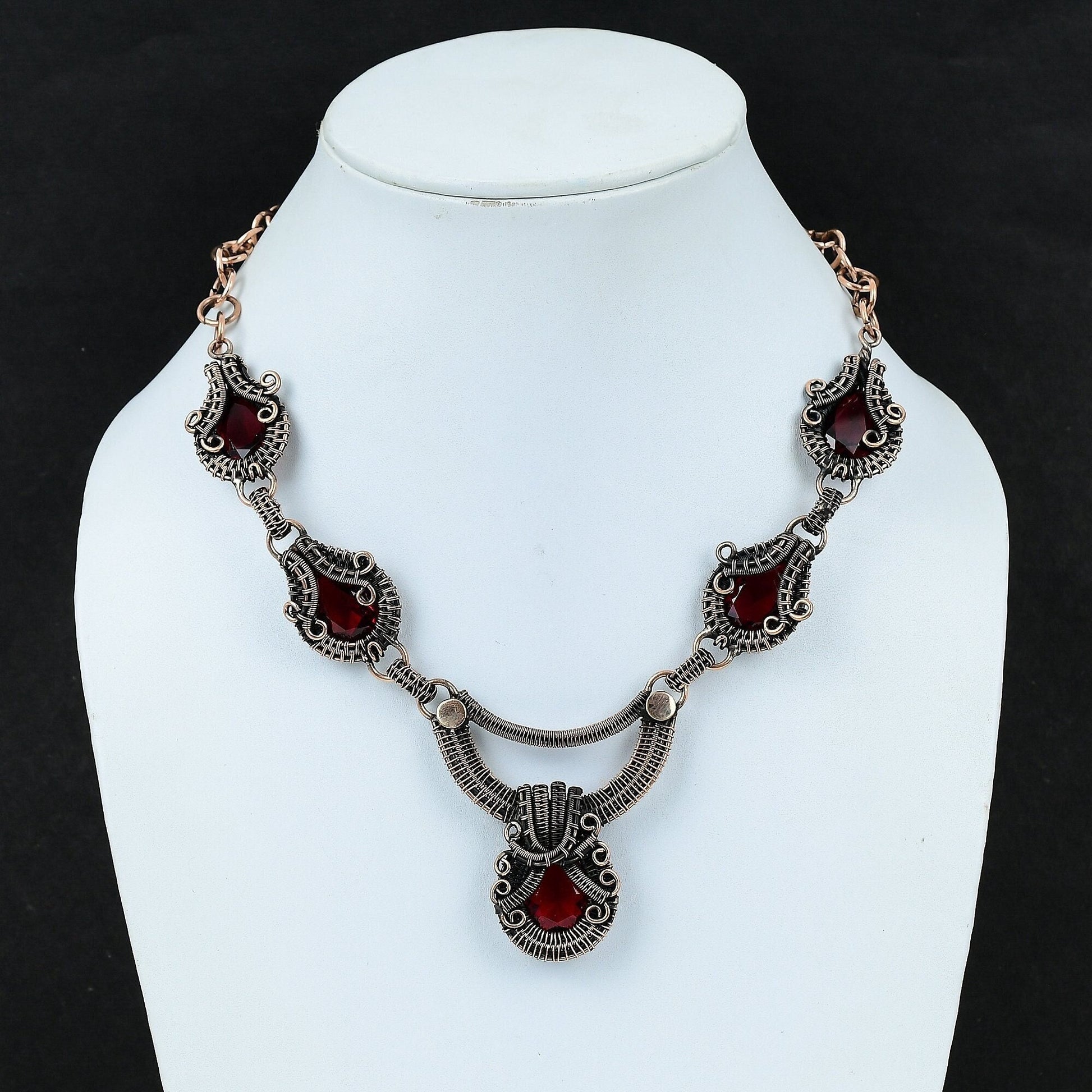 Unveil timeless elegance with our Vintage Red Gem Statement Necklace. This exquisite piece is crafted with intricately designed metallic links that gracefully embrace deep red gemstones, creating a captivating allure.