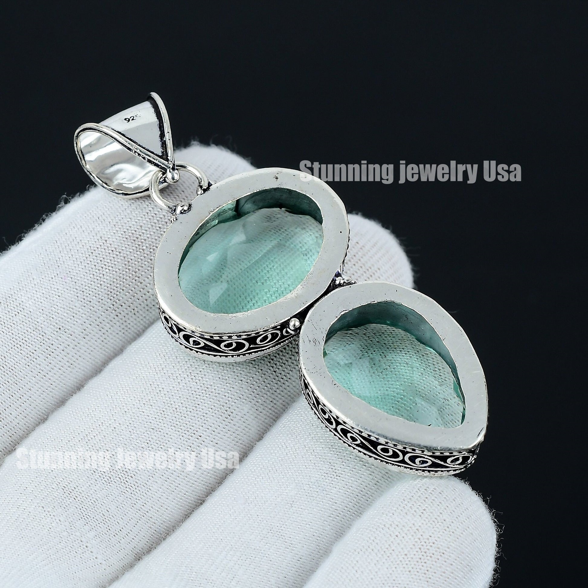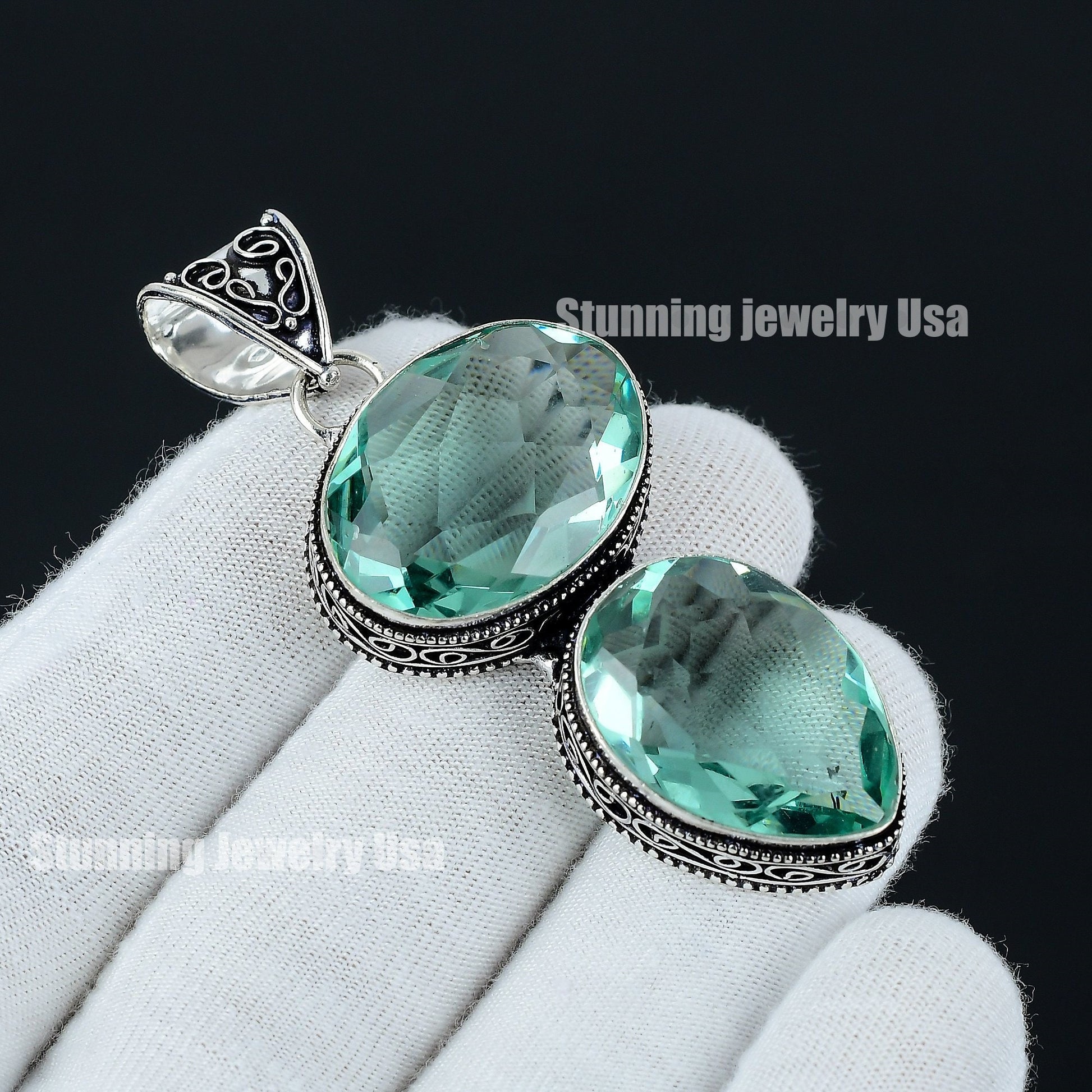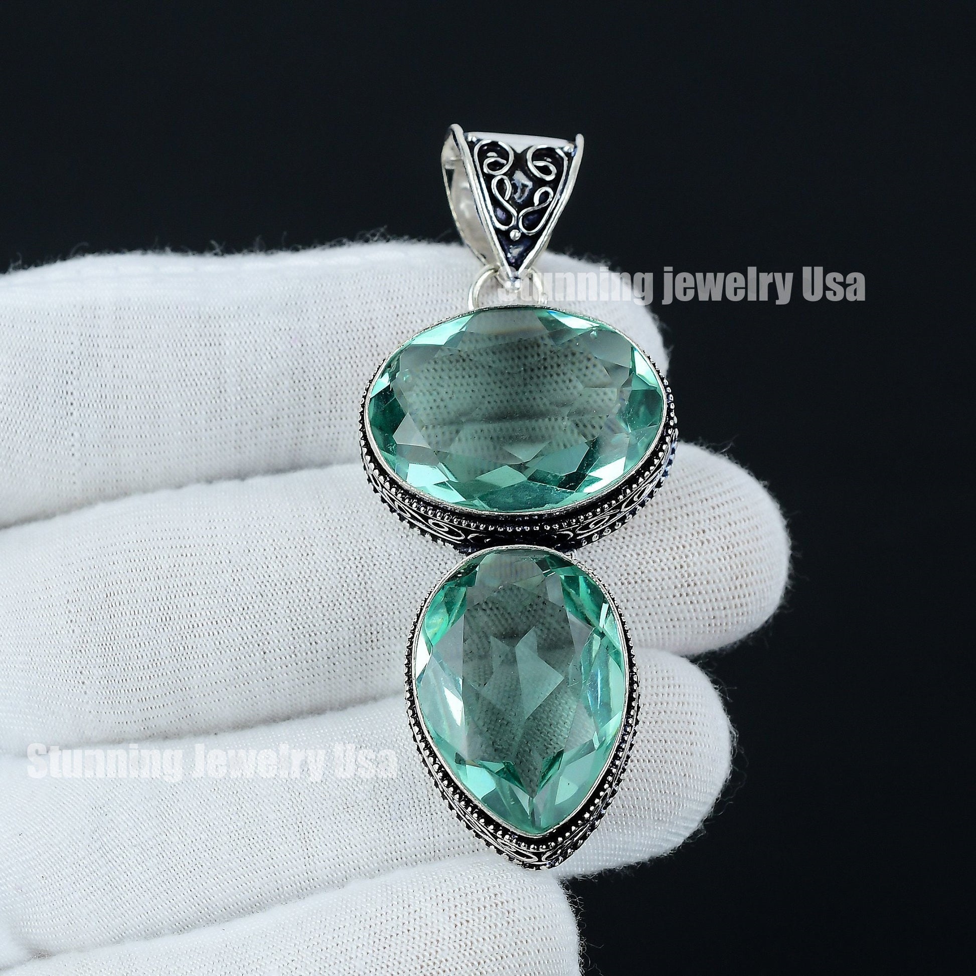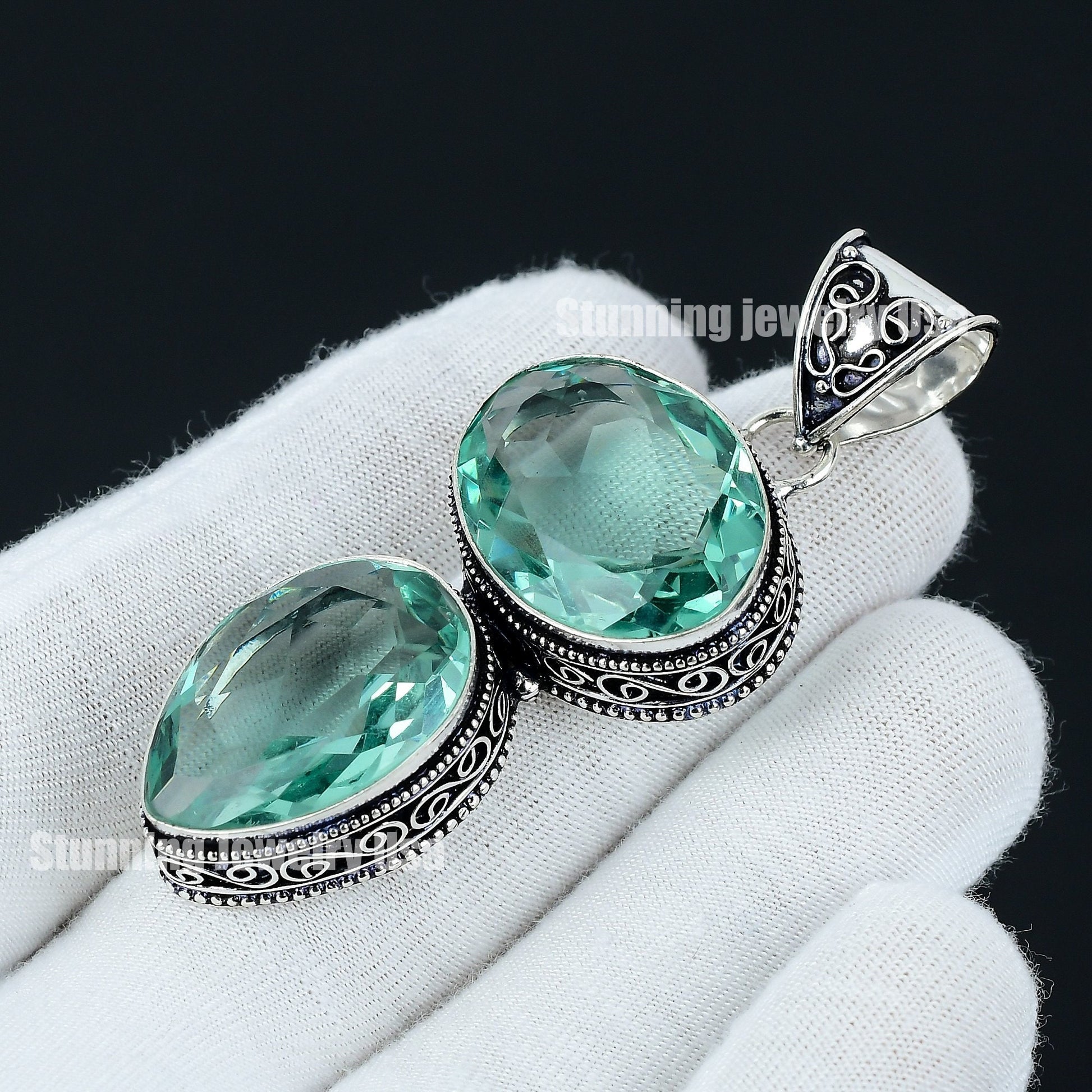 Experience the allure of elegance with this exquisite double oval gemstone pendant.