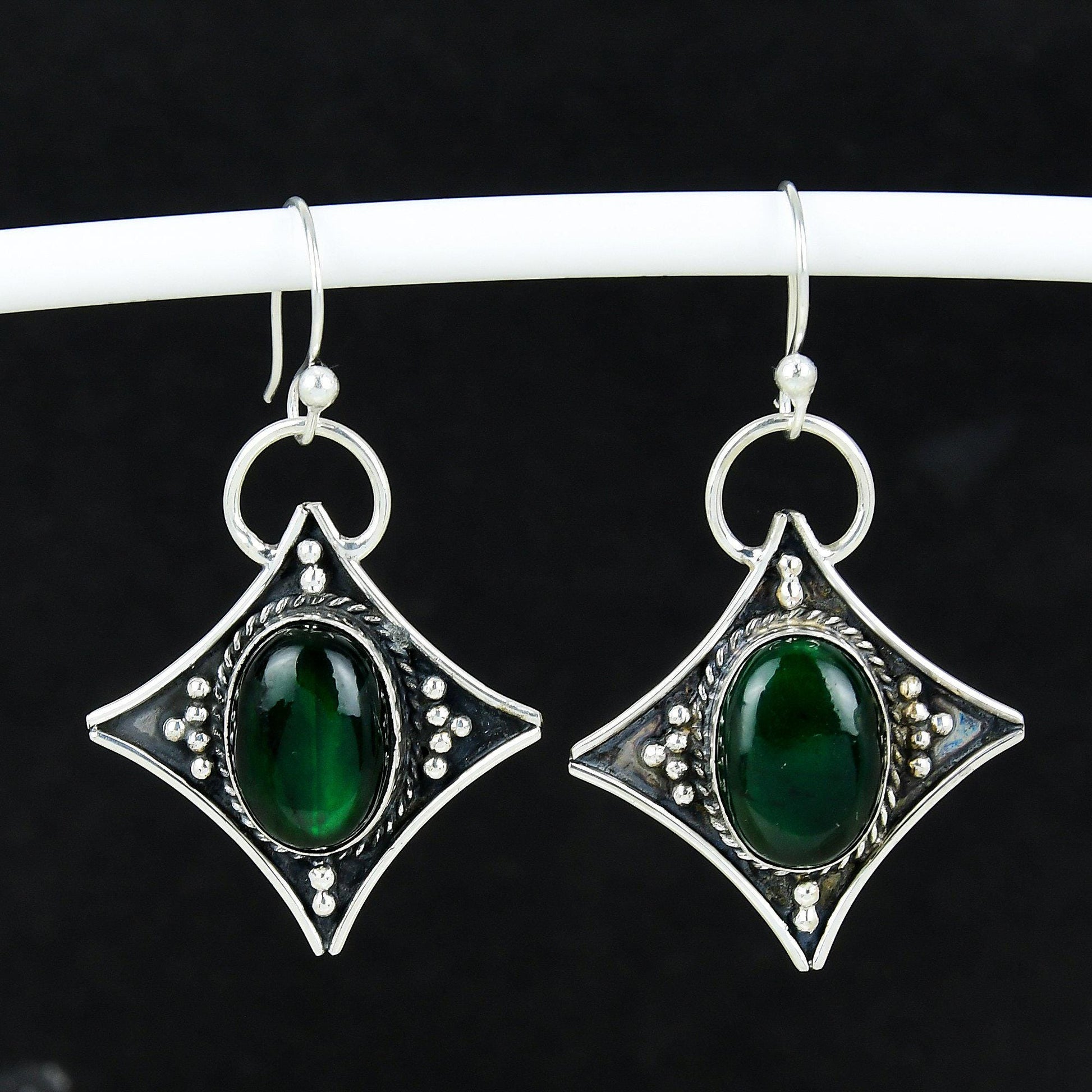Enhance your elegance with these exquisite drop earrings, featuring stunning green gemstones set in a unique vintage design.