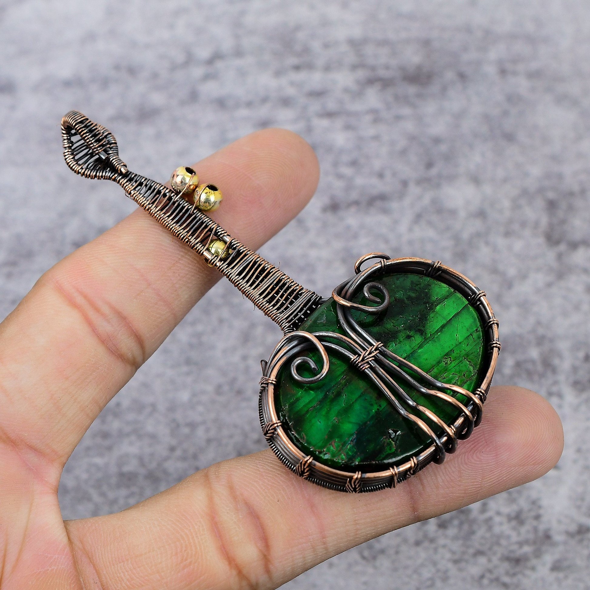 Unveil the beauty of craftsmanship with our exquisite wire-wrapped green stone pendant. This unique jewelry piece features intricate wire detailing that gracefully envelops a vibrant green stone, creating a striking visual contrast.