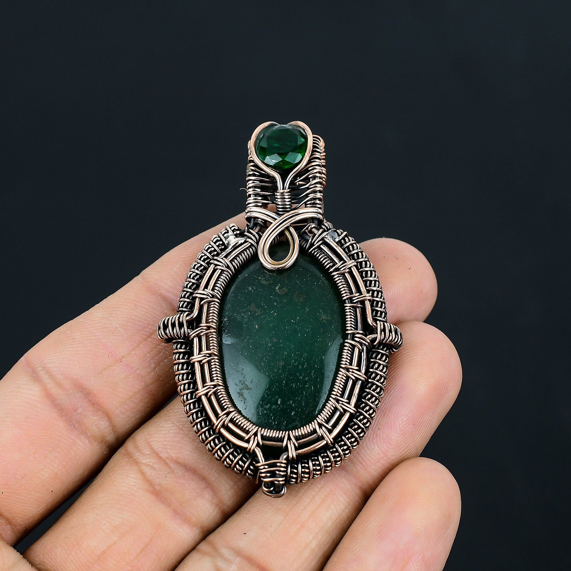 Discover elegance with our handcrafted wire-wrapped pendant featuring a stunning natural green stone.