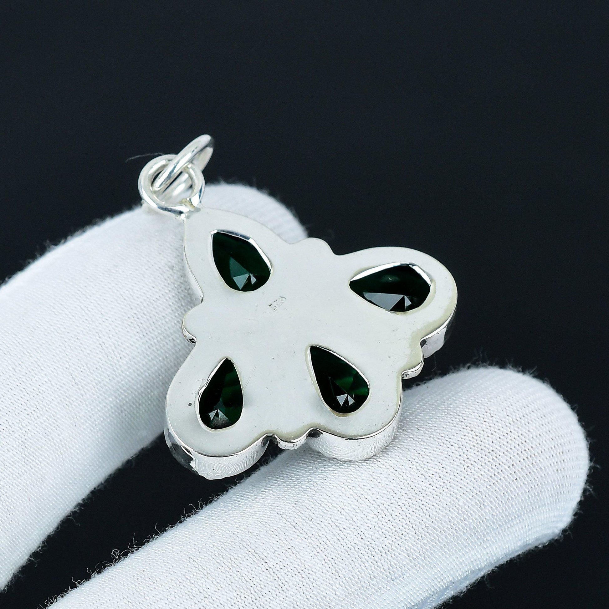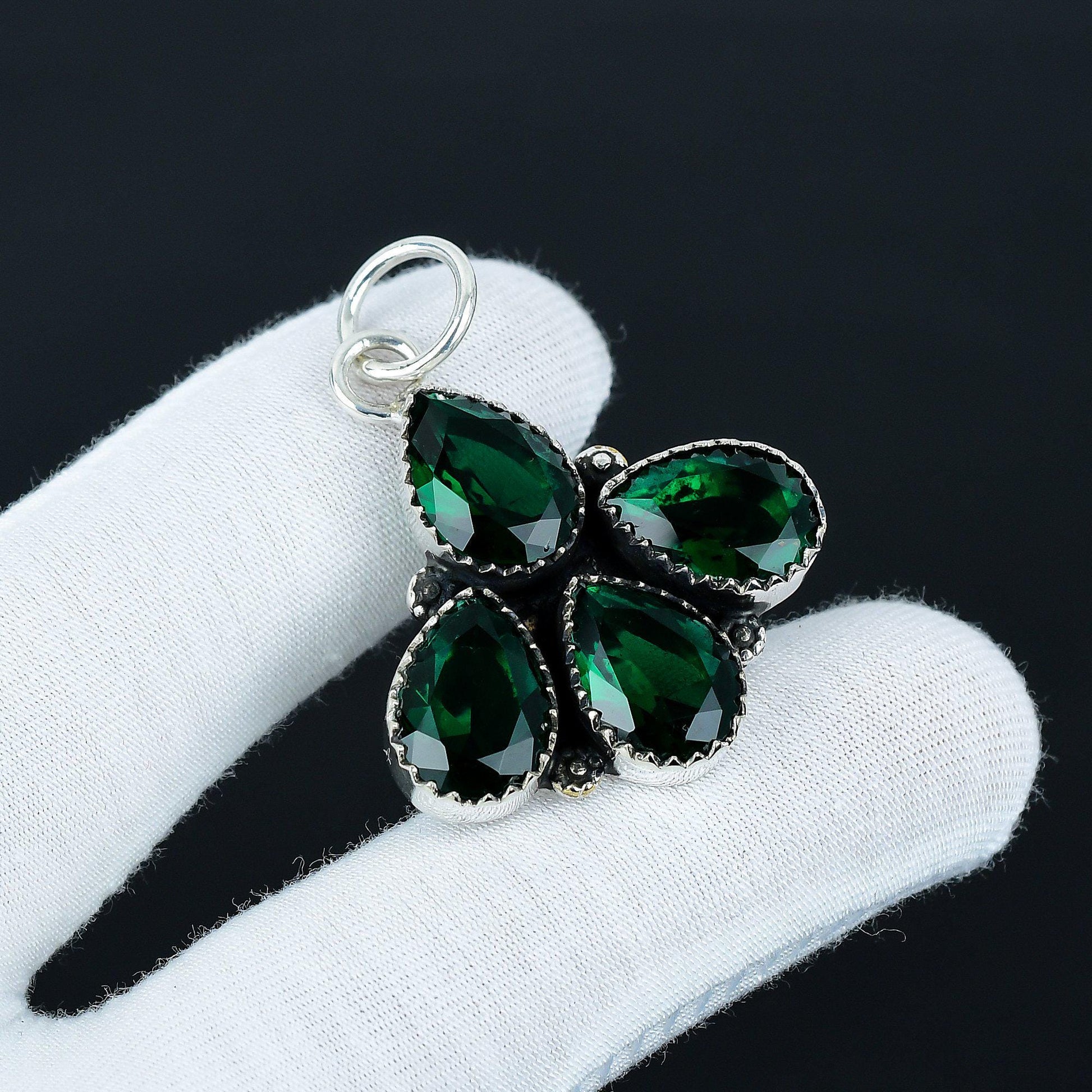 Featuring four stunning teardrop-cut green stones, this pendant beautifully captures light and radiates a luxurious charm.