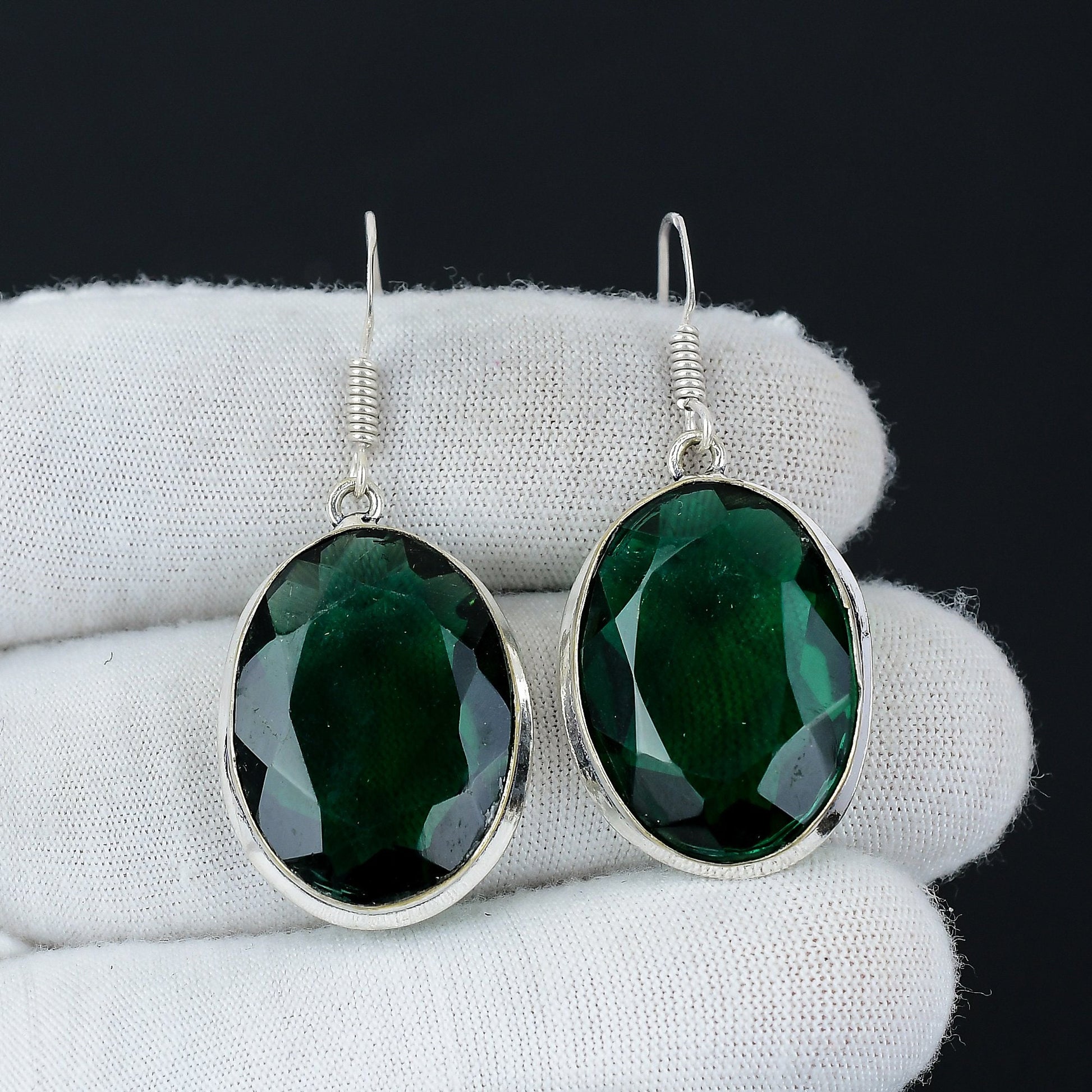 - Vibrant Gemstone: Stunning oval-cut emerald green stones, expertly faceted to reflect light brilliantly.