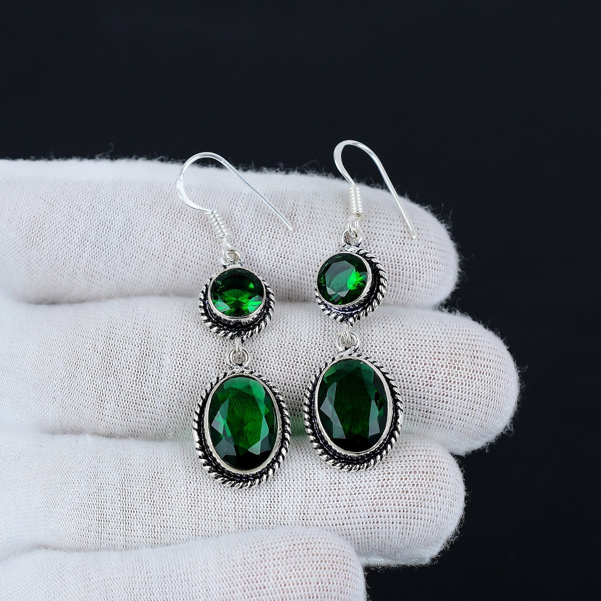 Discover elegance and sophistication with our exquisite green gemstone drop earrings.