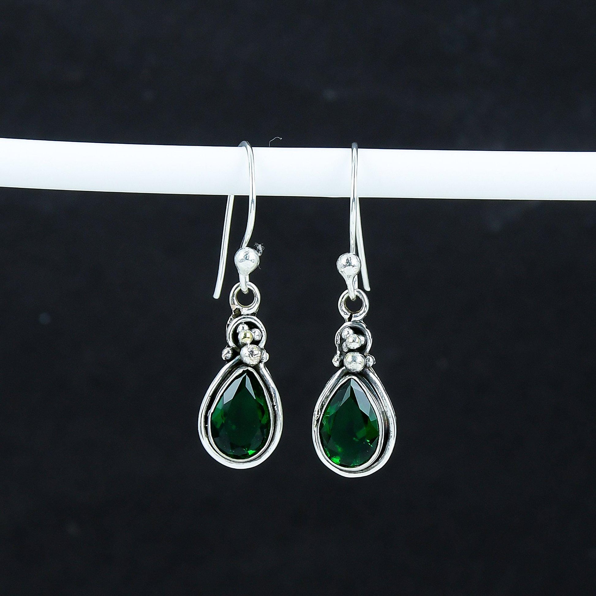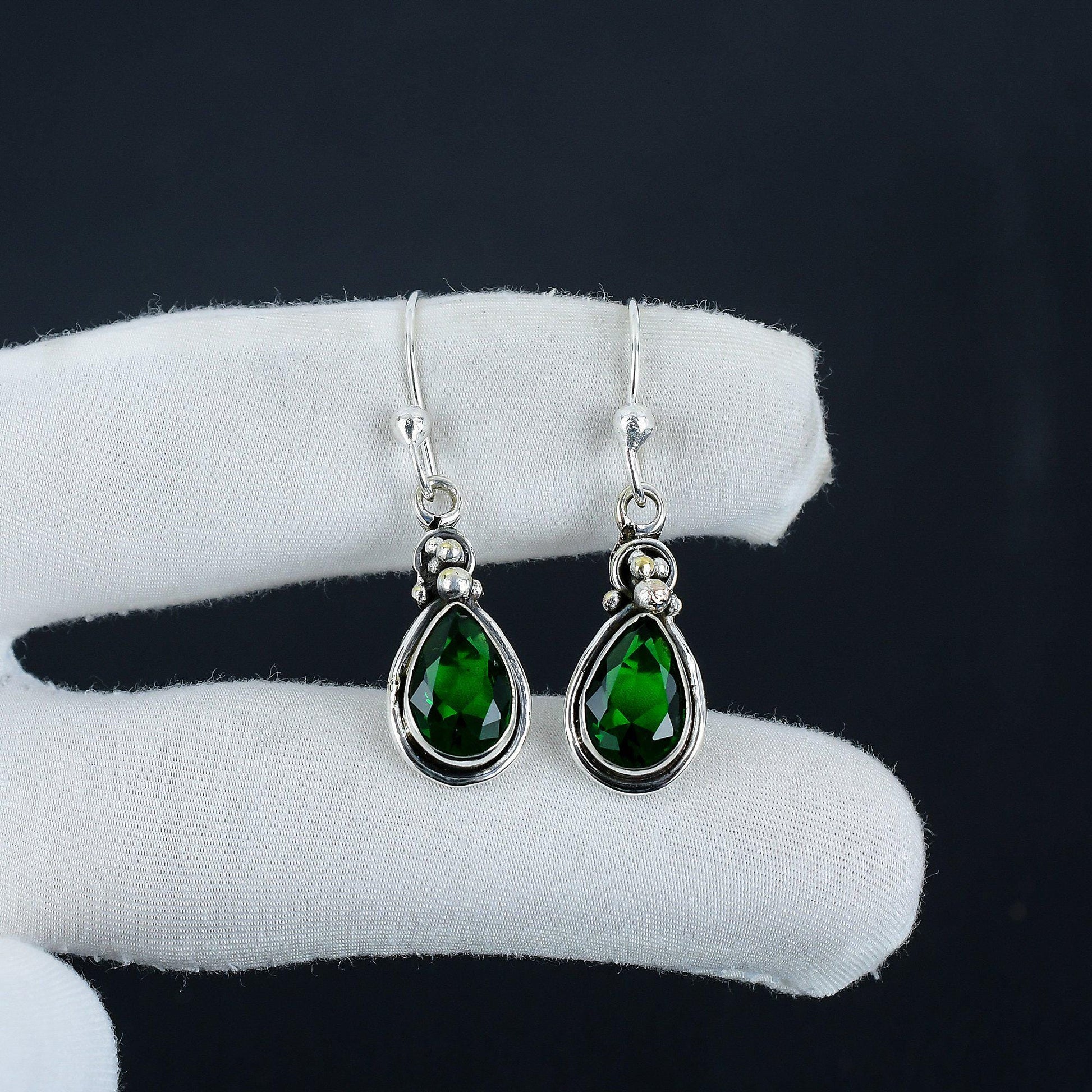 Featuring stunning green gemstones set in a sleek silver-tone frame, these earrings create a captivating sparkle with every movement.