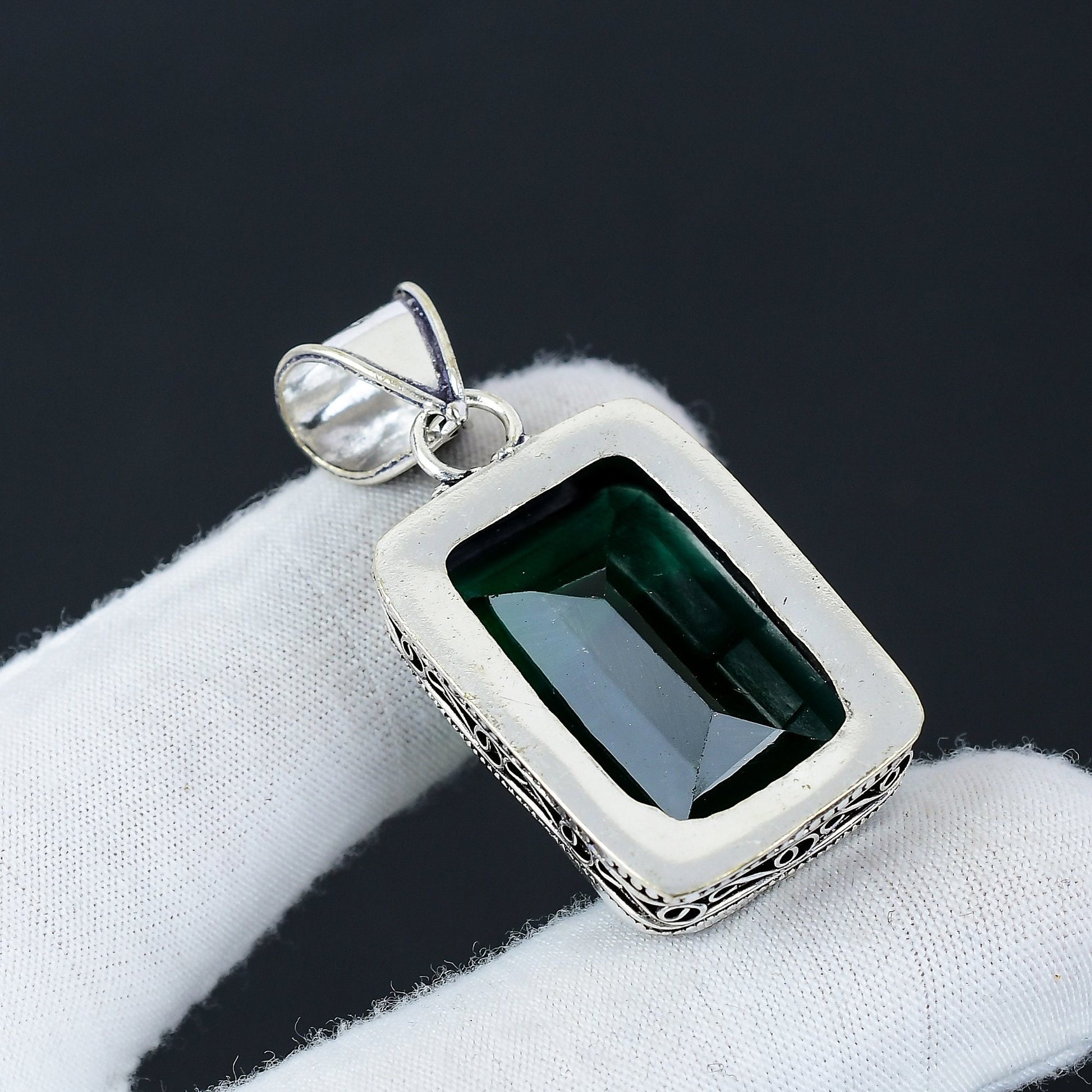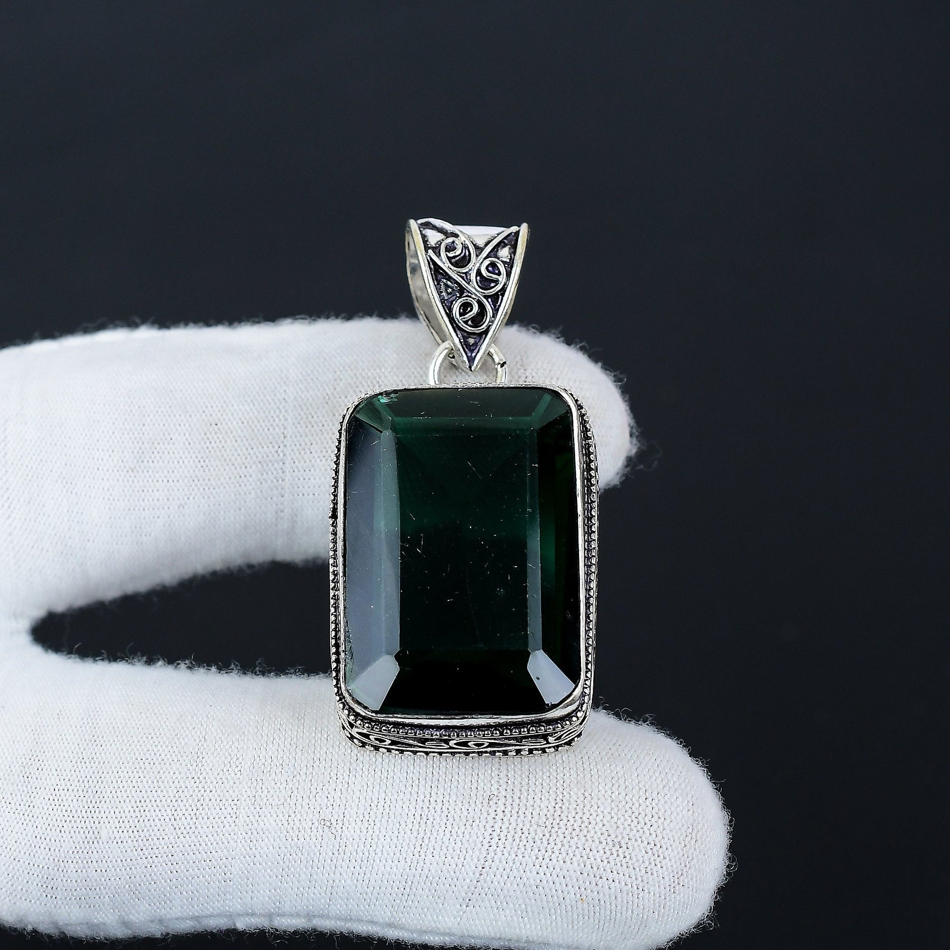 Experience timeless elegance with our handcrafted pendant, featuring a stunning deep green gemstone.