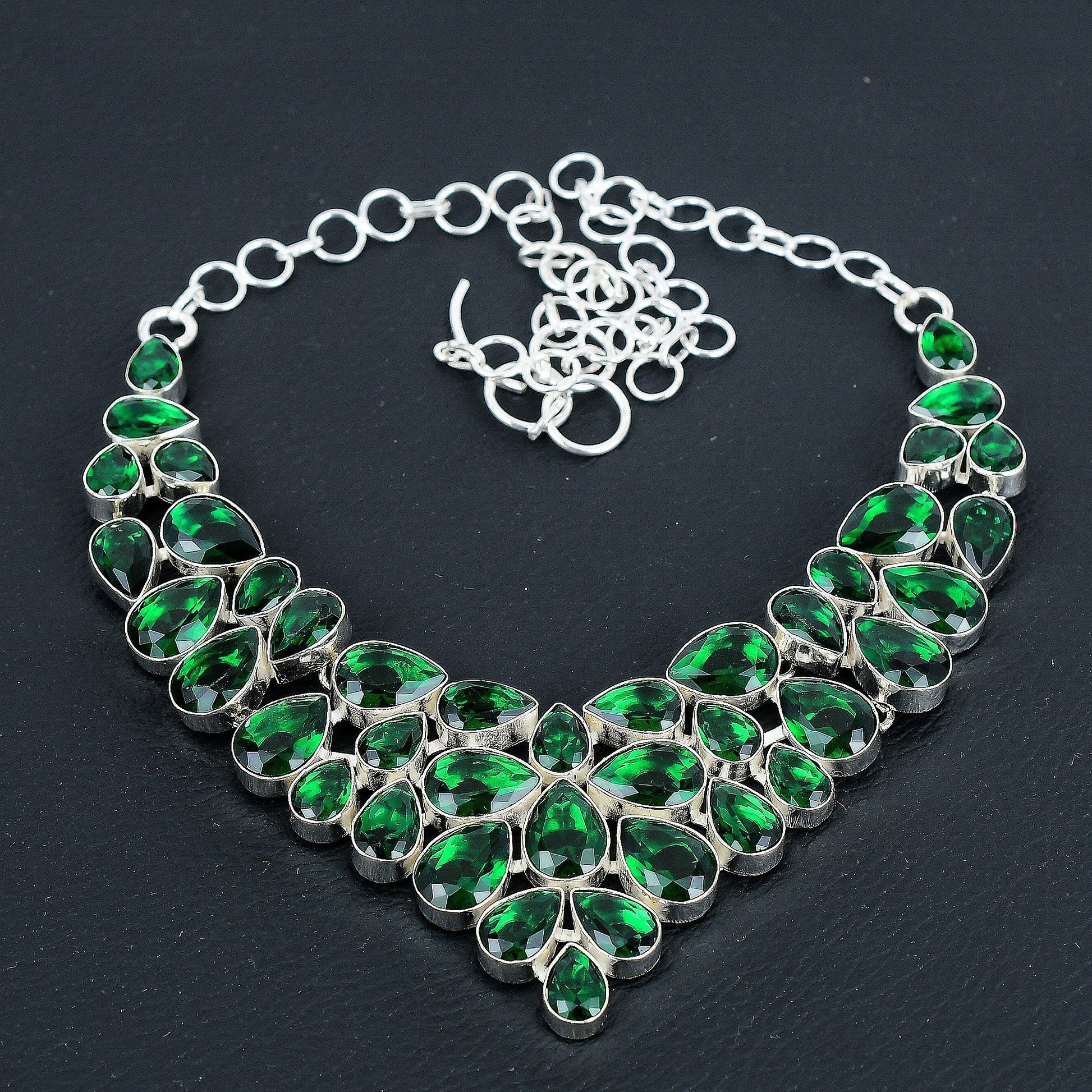Exquisite Design: Featuring vibrant green gemstones set in polished silver, this piece embodies luxury and sophistication.