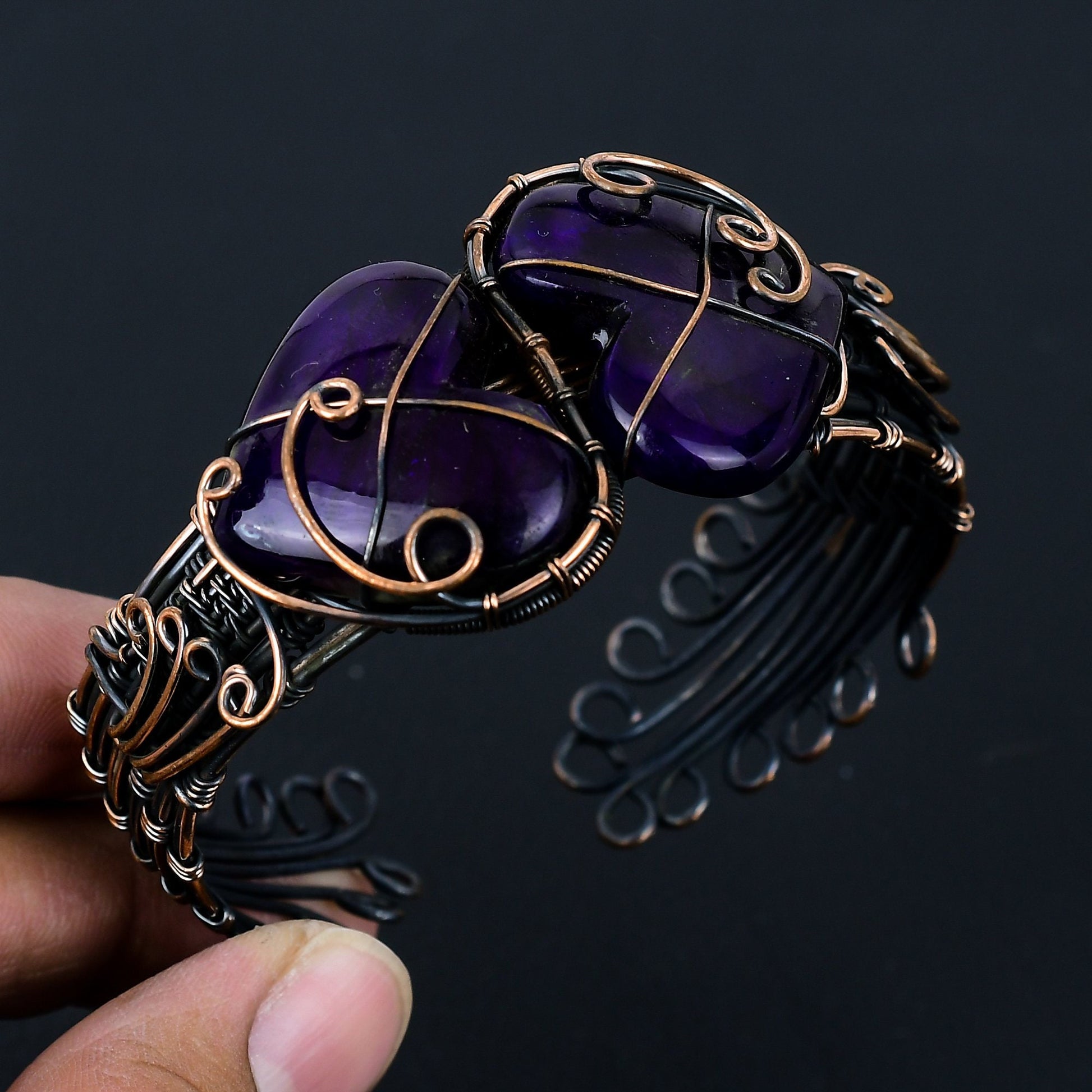 Stunning Design: This unique piece features deep purple amethyst stones, beautifully encased in intricate wirework, showcasing the perfect blend of art and nature.