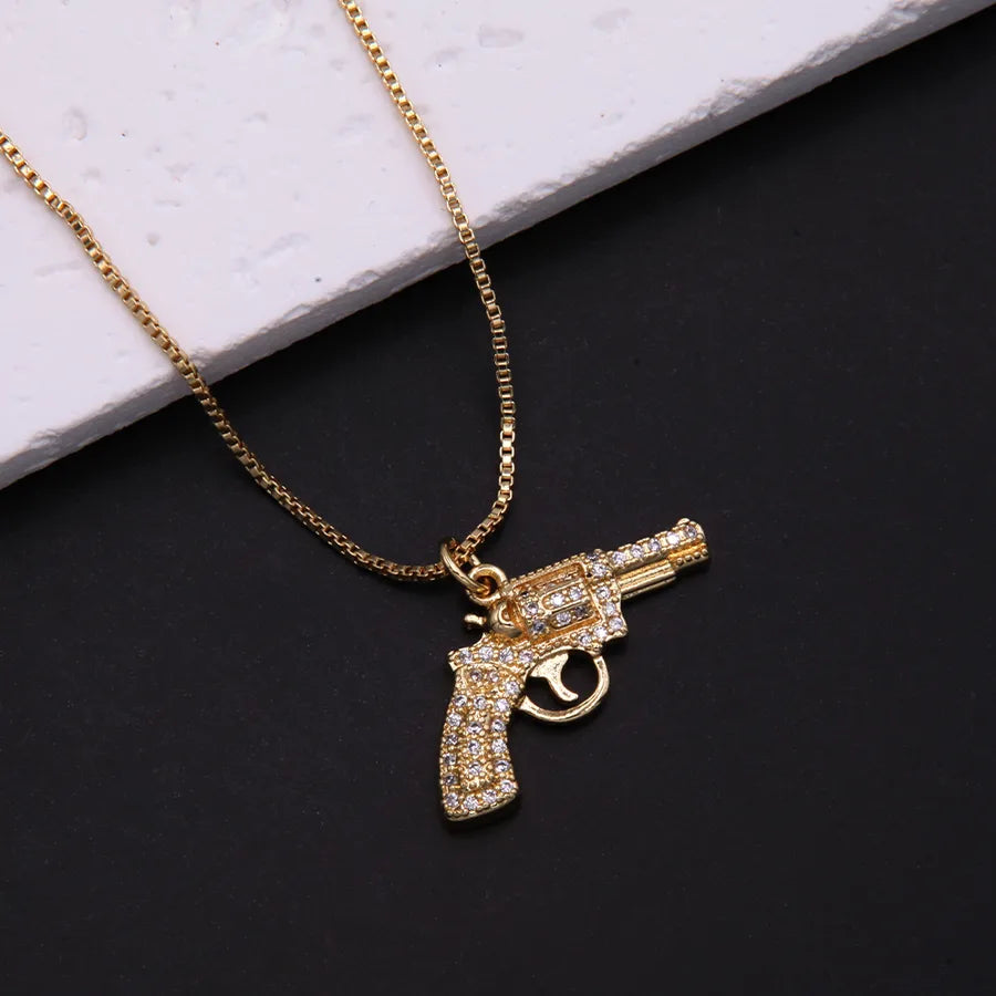 Elevate your style with our stunning Gold-Plated Gun Pendant Necklace.