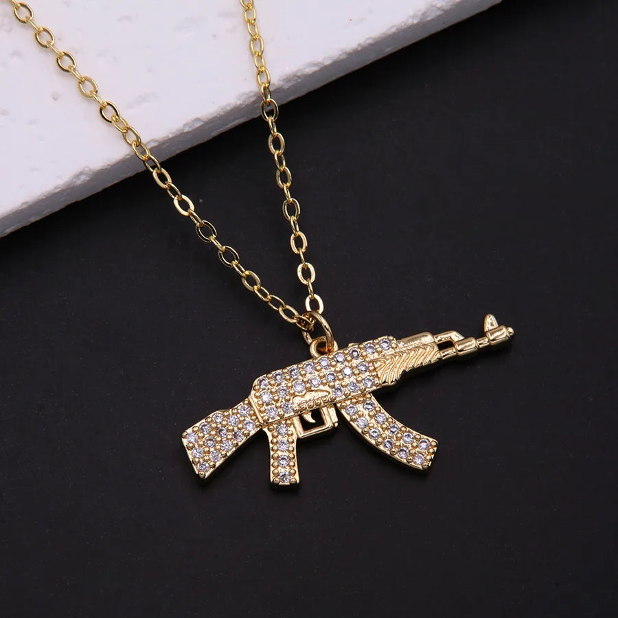 Whether for everyday wear or special occasions, this gold-plated gun pendant necklace is sure to turn heads.