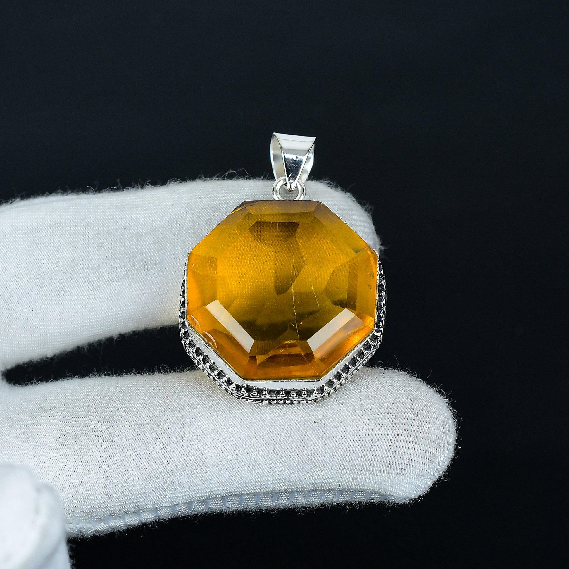 Unveil elegance and charm with this exquisite octagonal citrine pendant.