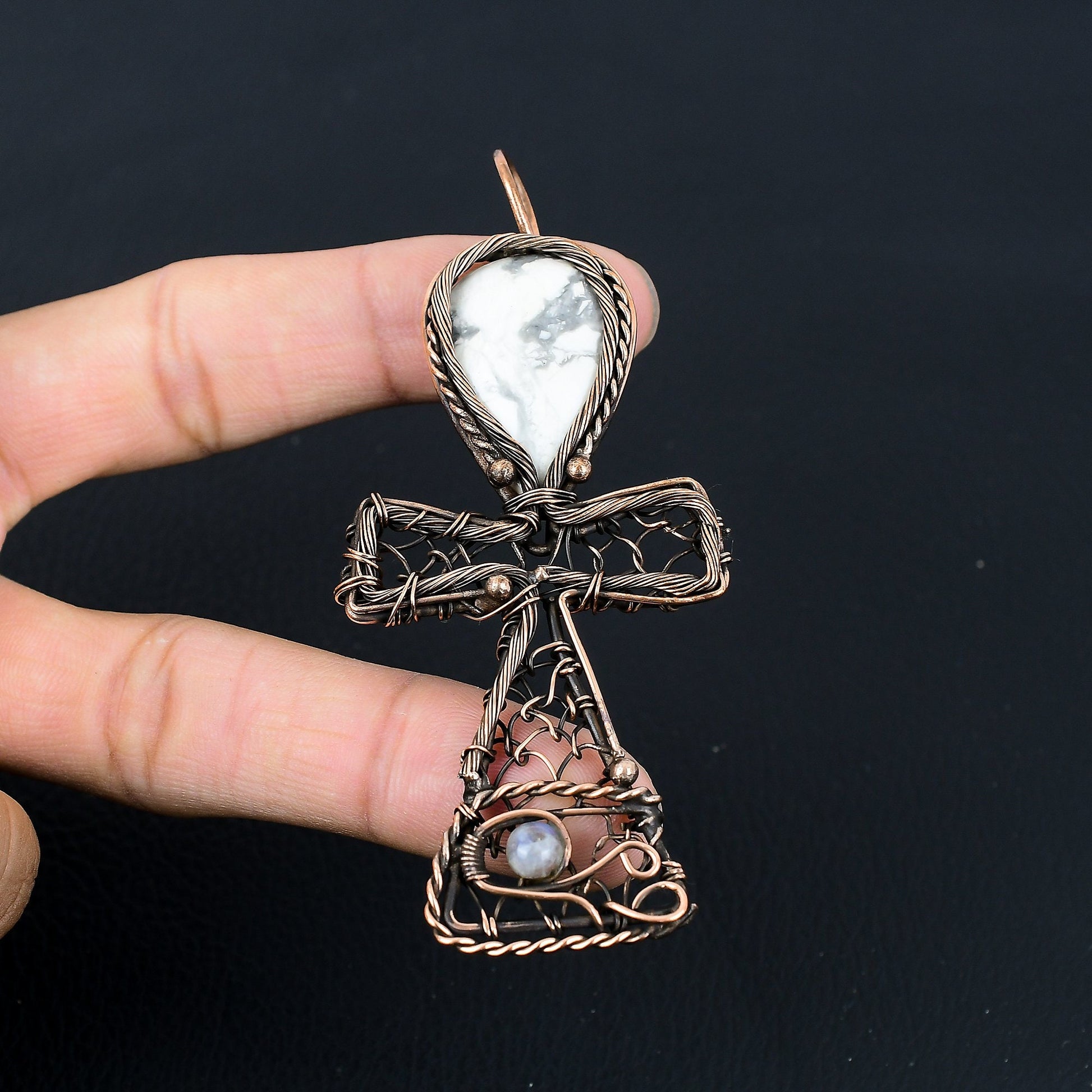 Embrace the enchanting allure of our handcrafted wire-wrapped cross pendant, a true masterpiece of artisan jewelry. Expertly designed with intricate wire patterns, this pendant features a striking natural stone centerpiece that exudes elegance and sophistication.