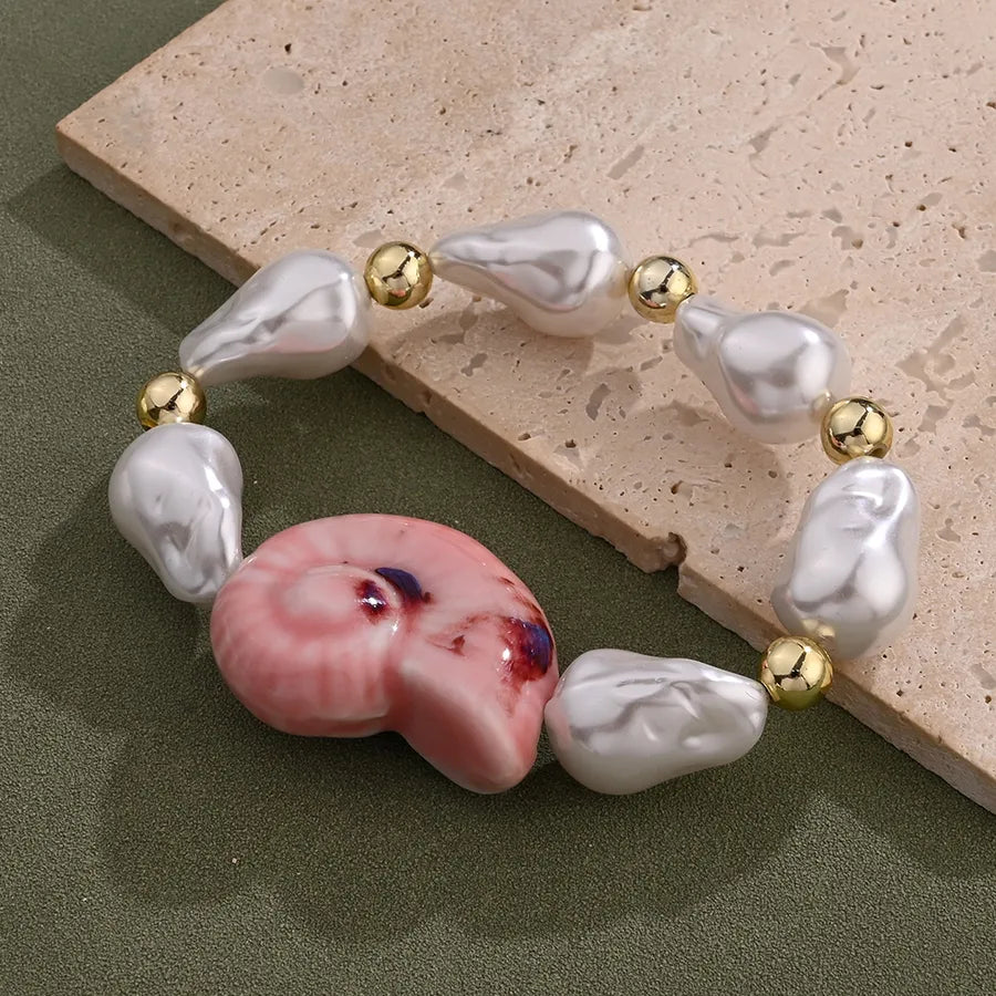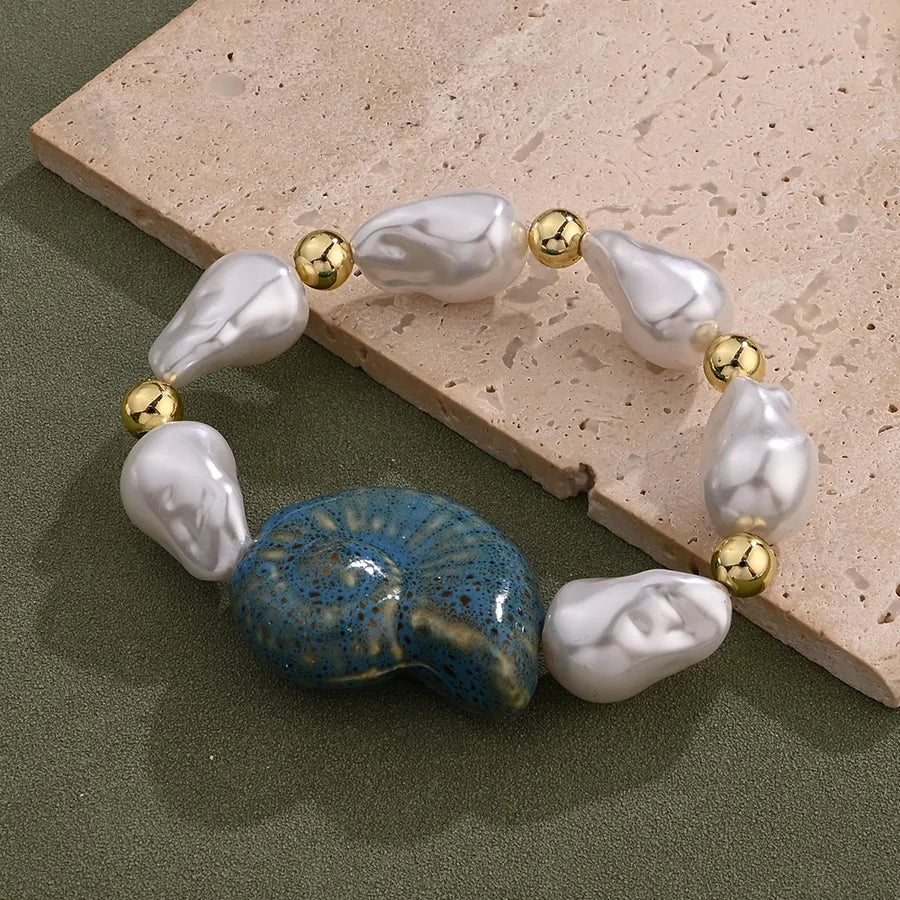 Each bracelet is adorned with lustrous faux pearl beads and glimmering gold accents, creating an enchanting blend of maritime magic and timeless sophistication.