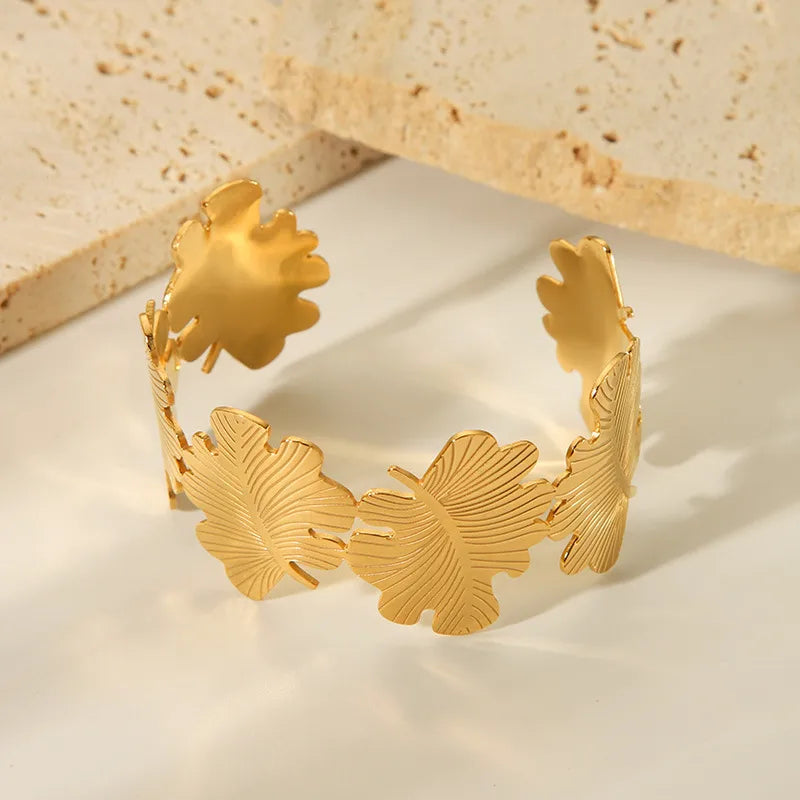Elegant Design: Featuring delicate leaf patterns, this bracelet blends nature-inspired artistry with modern elegance.