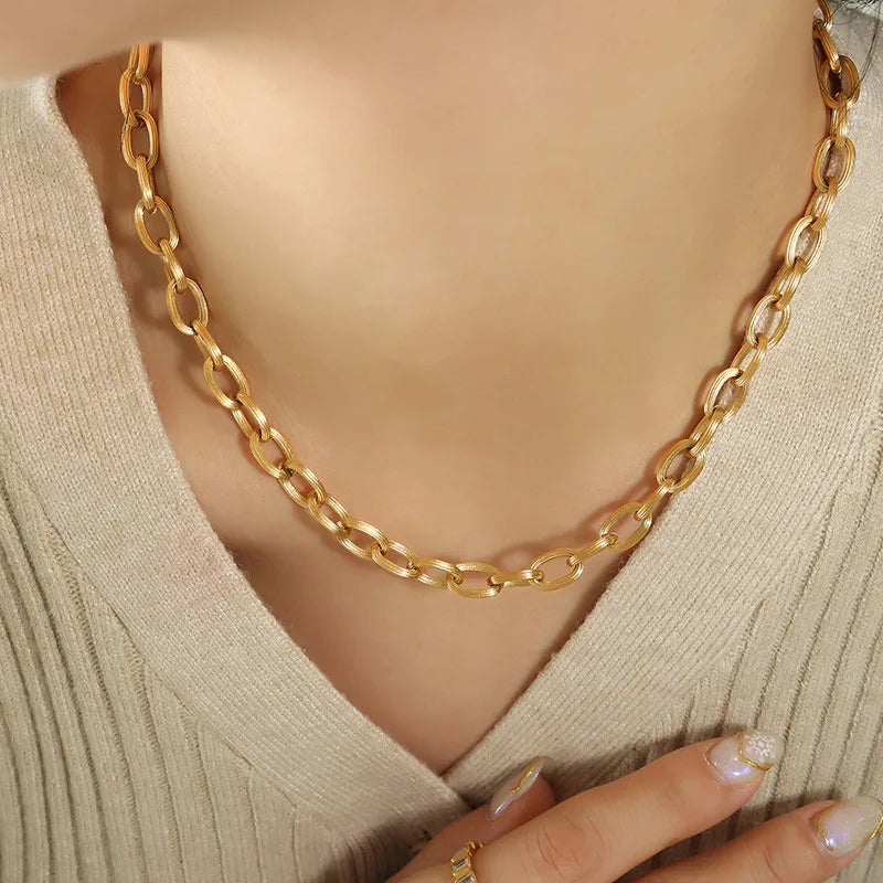 This jewelry set is perfect for adding a touch of elegance to your look or gifting to someone special. Enhance your collection with our stunning gold chain set today.